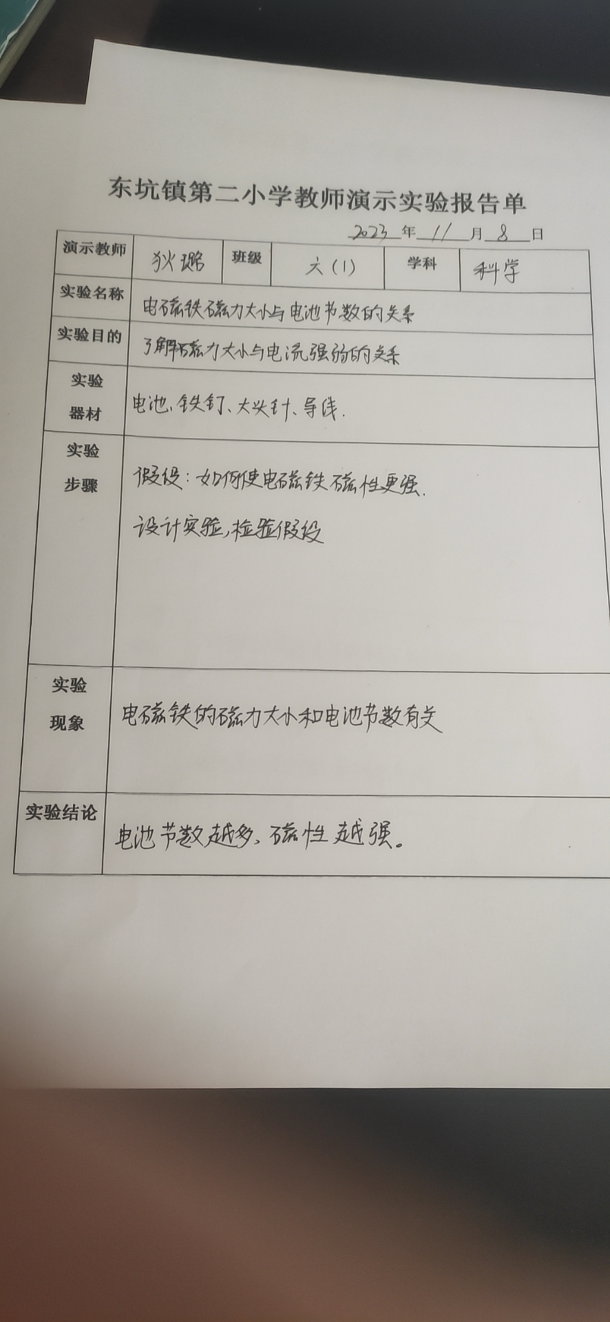 电磁铁磁力大小与电池...