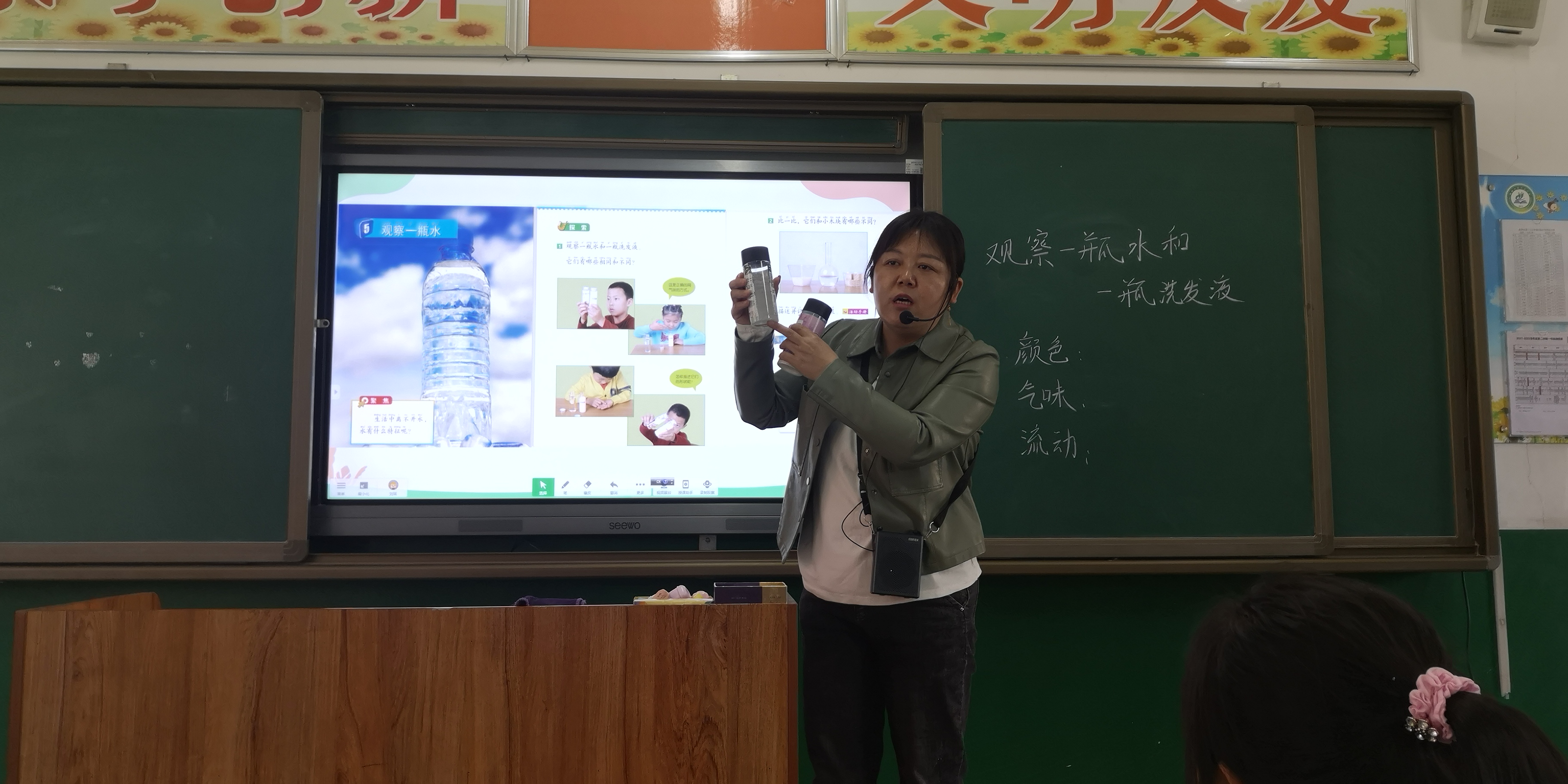 观察一瓶水和一瓶洗发...