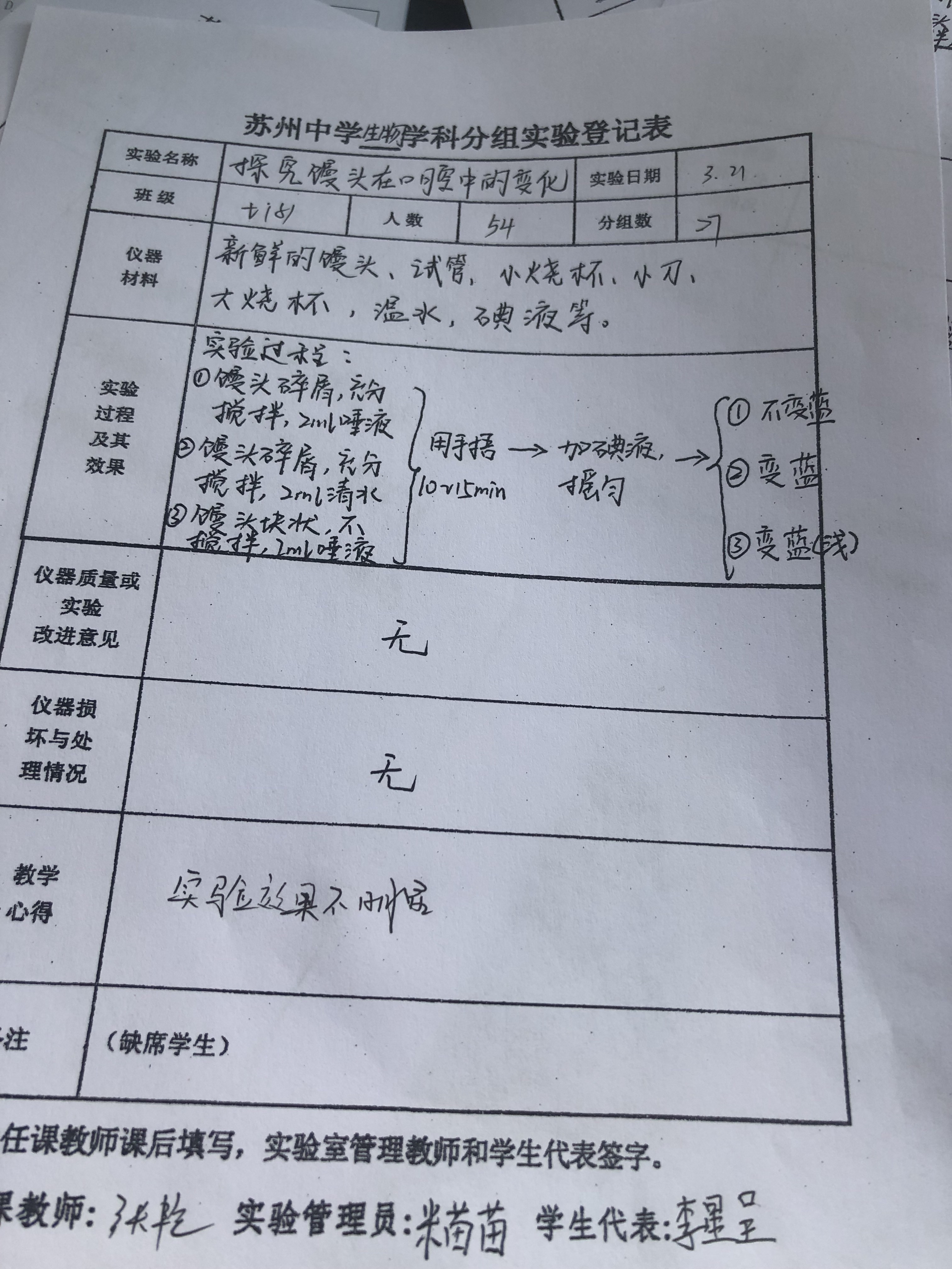 探究馒头在口腔中变化