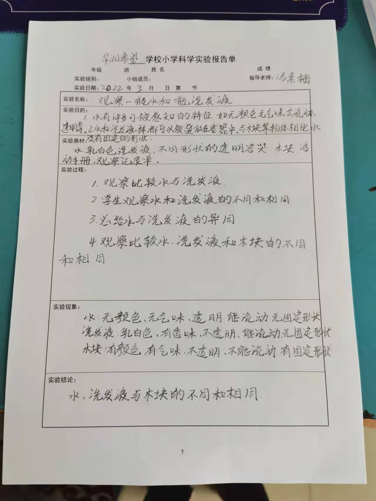 观察一瓶水和一瓶洗发...