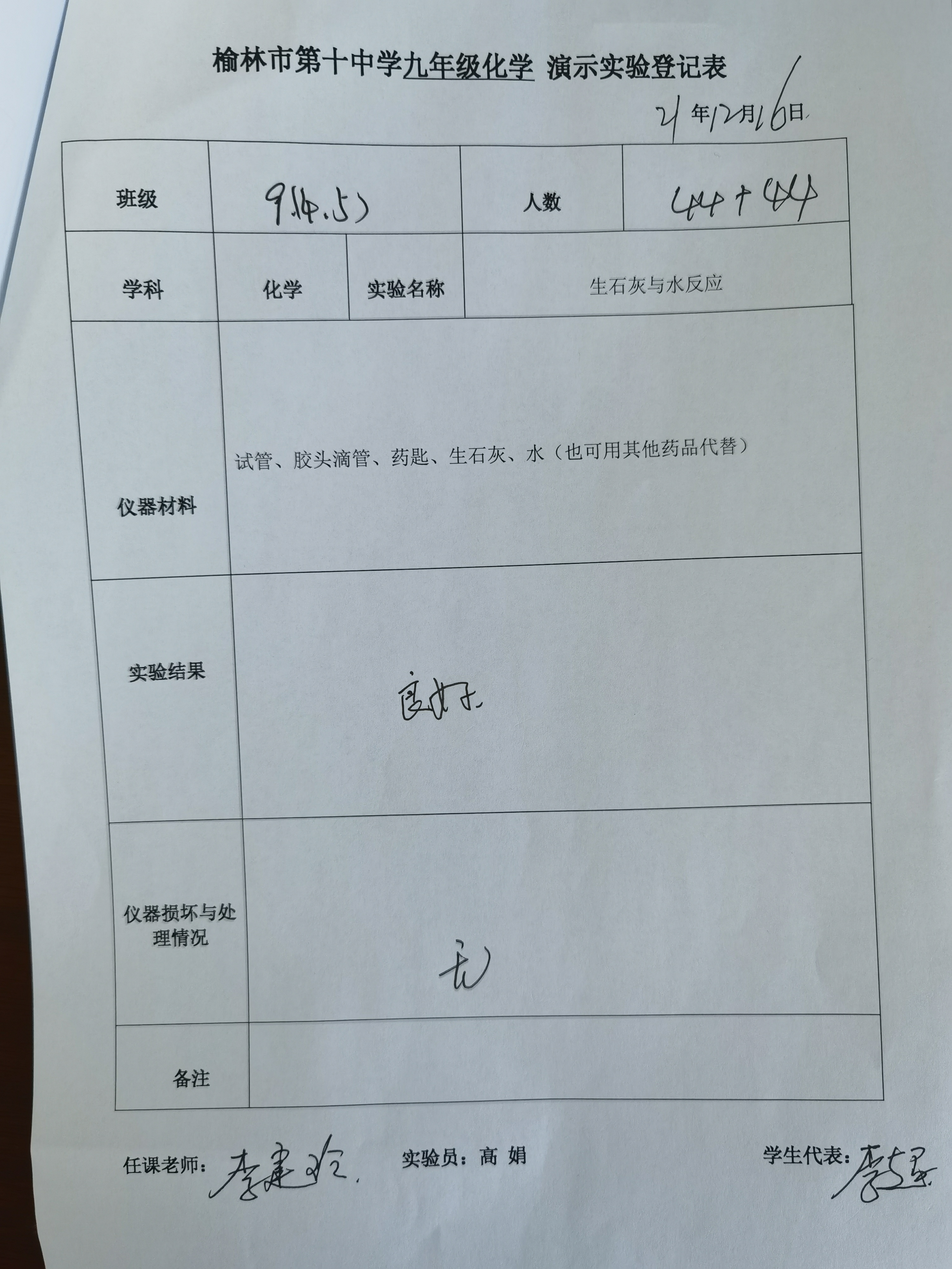 生石灰与水反应