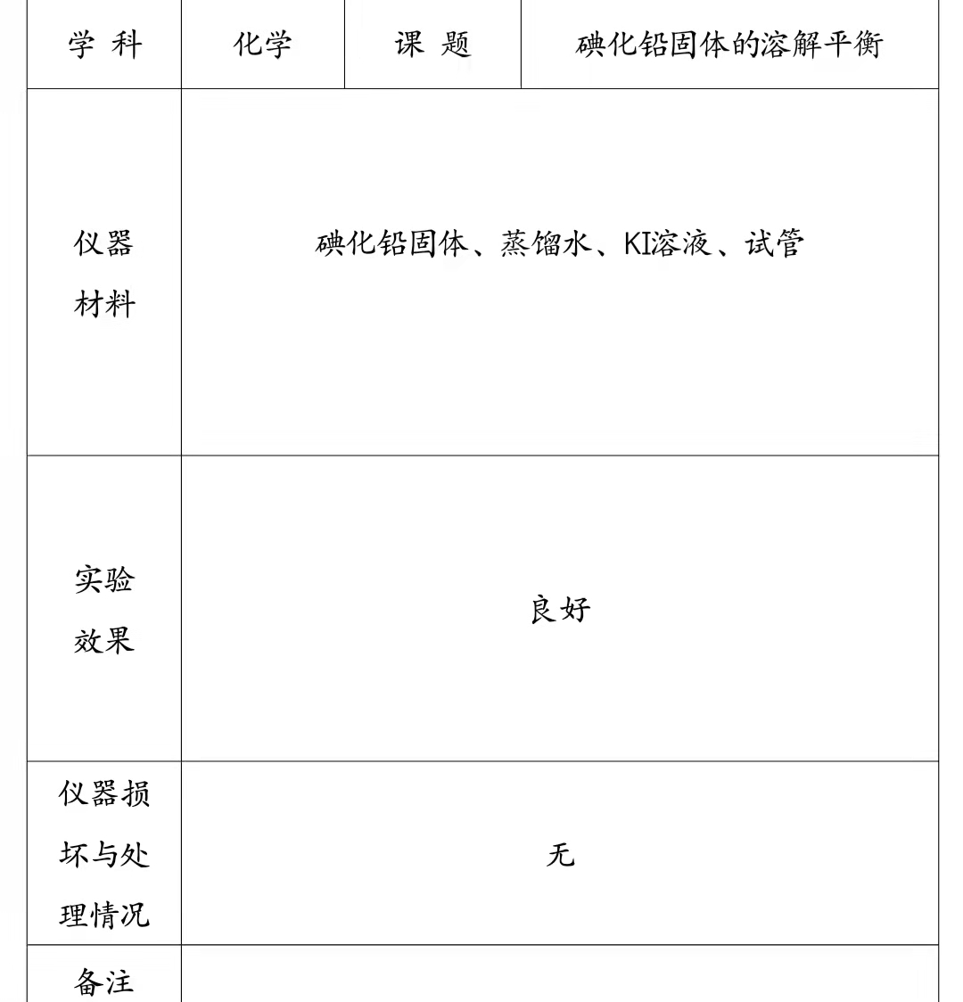 碘化铅固体的溶解平衡