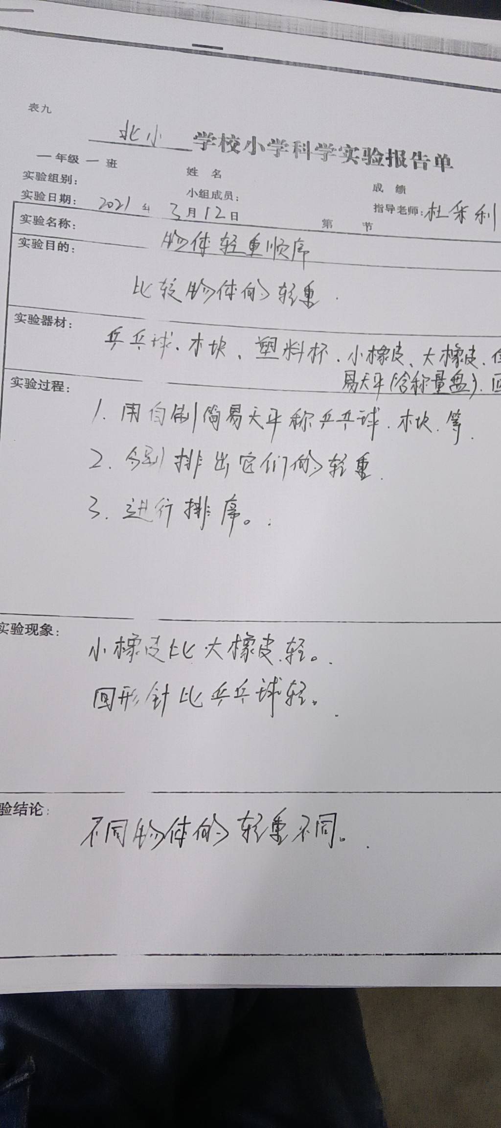 物体轻重排序