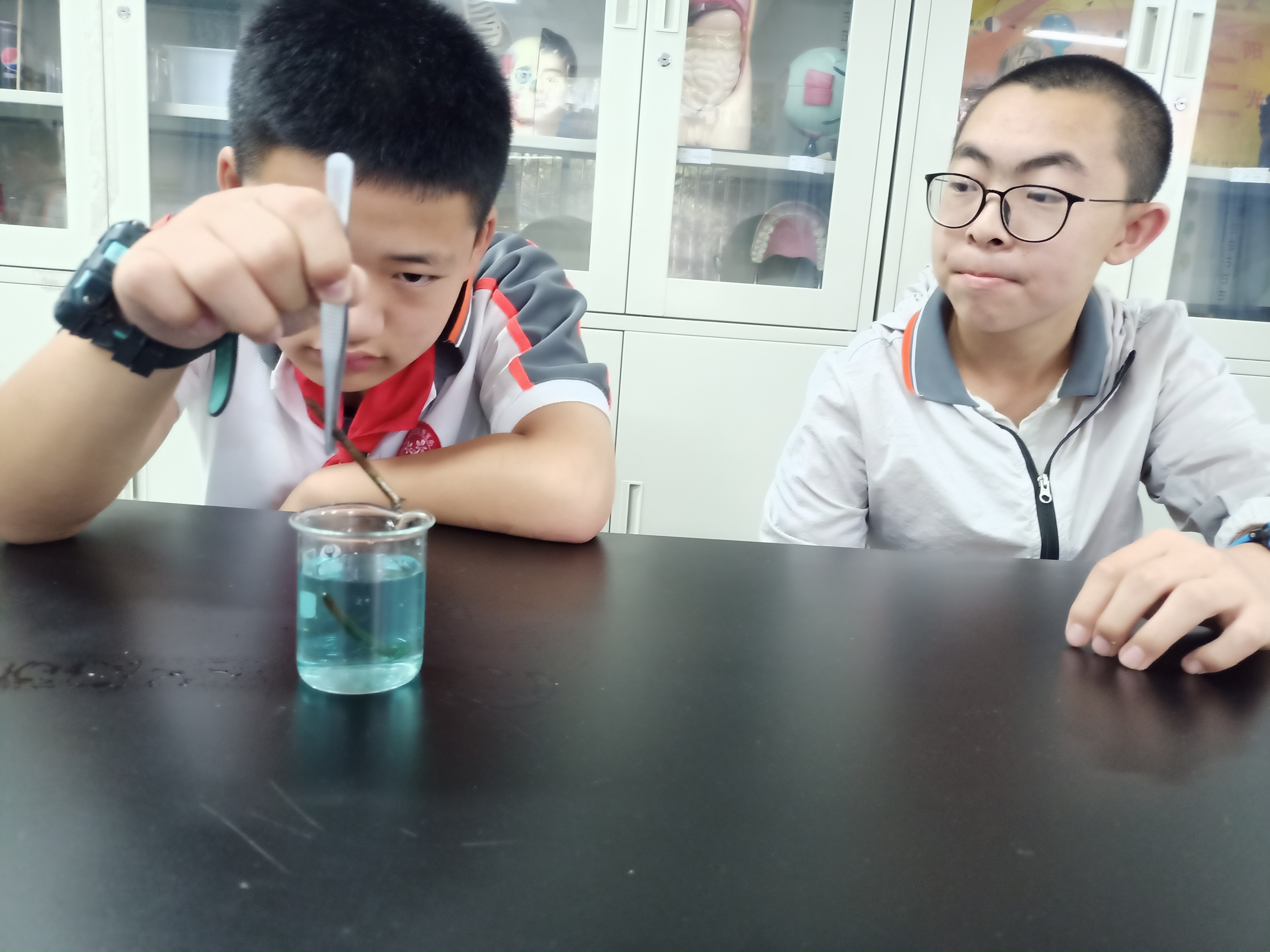 观察硫酸铜溶液和铁钉...