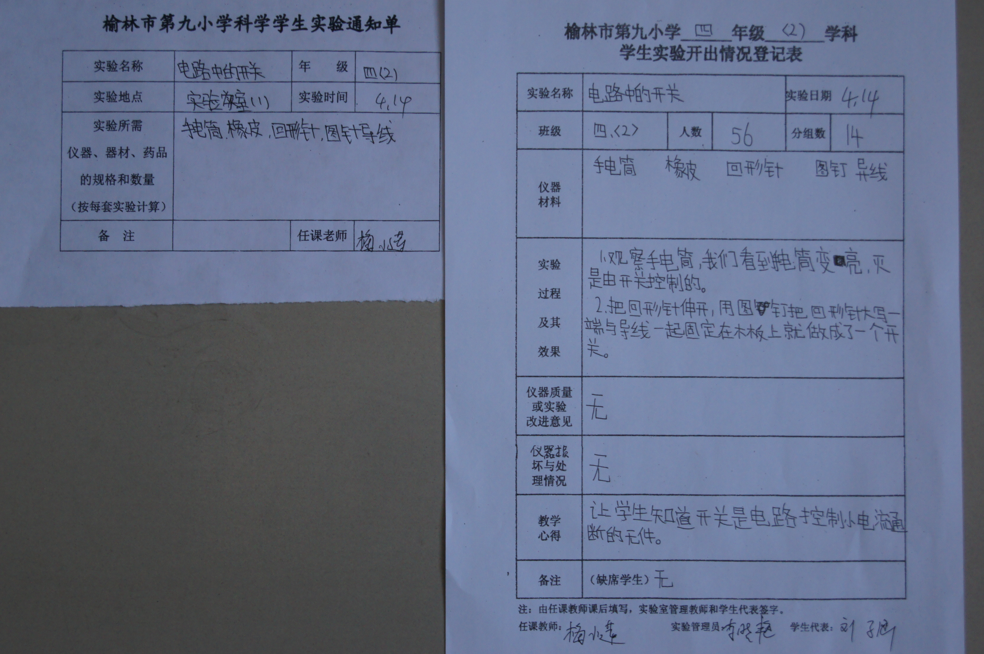 实验登记表