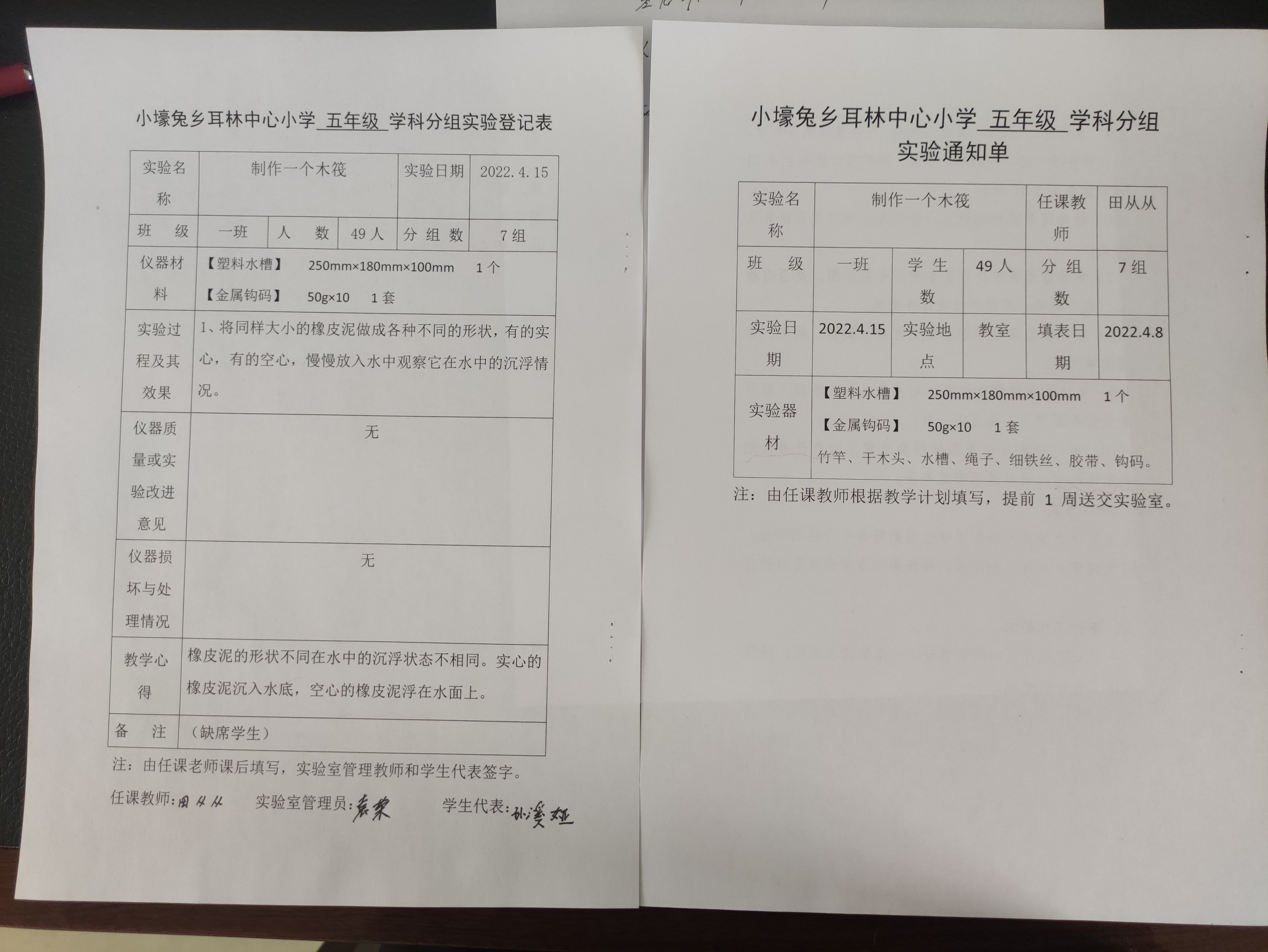 实验登记表