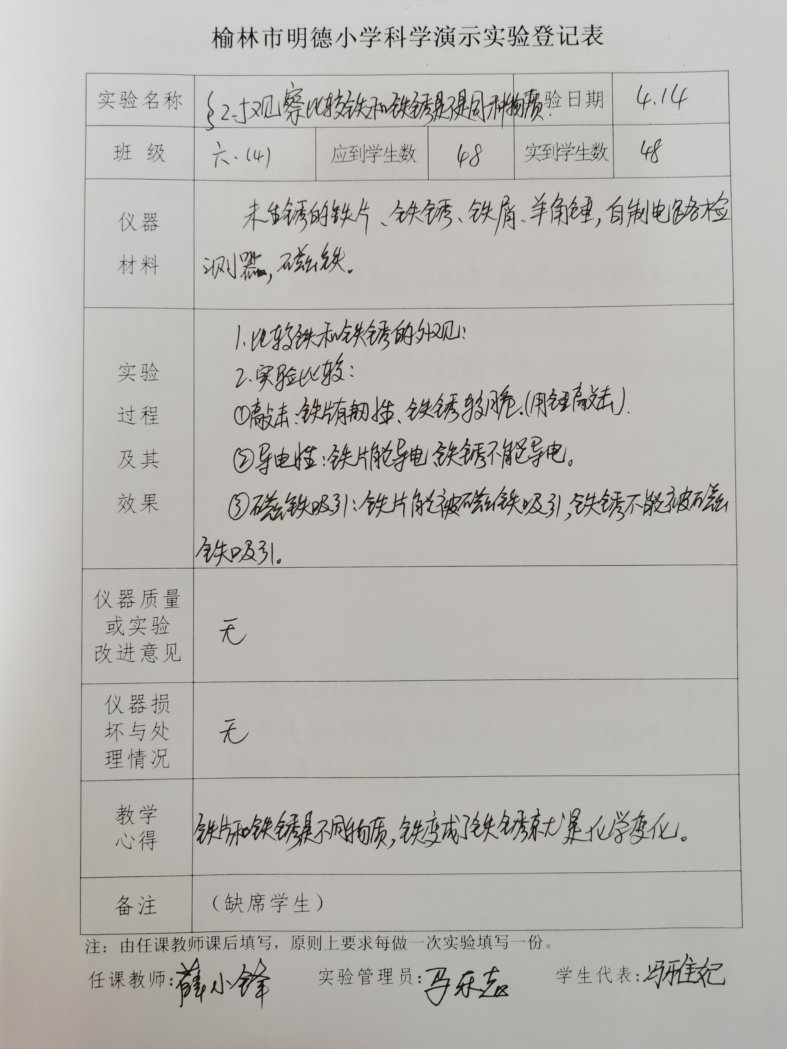 2.5观察比较铁和铁锈是不是同一种物质【六④】