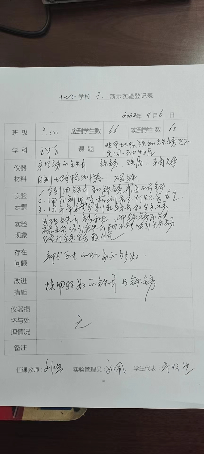 实验登记表