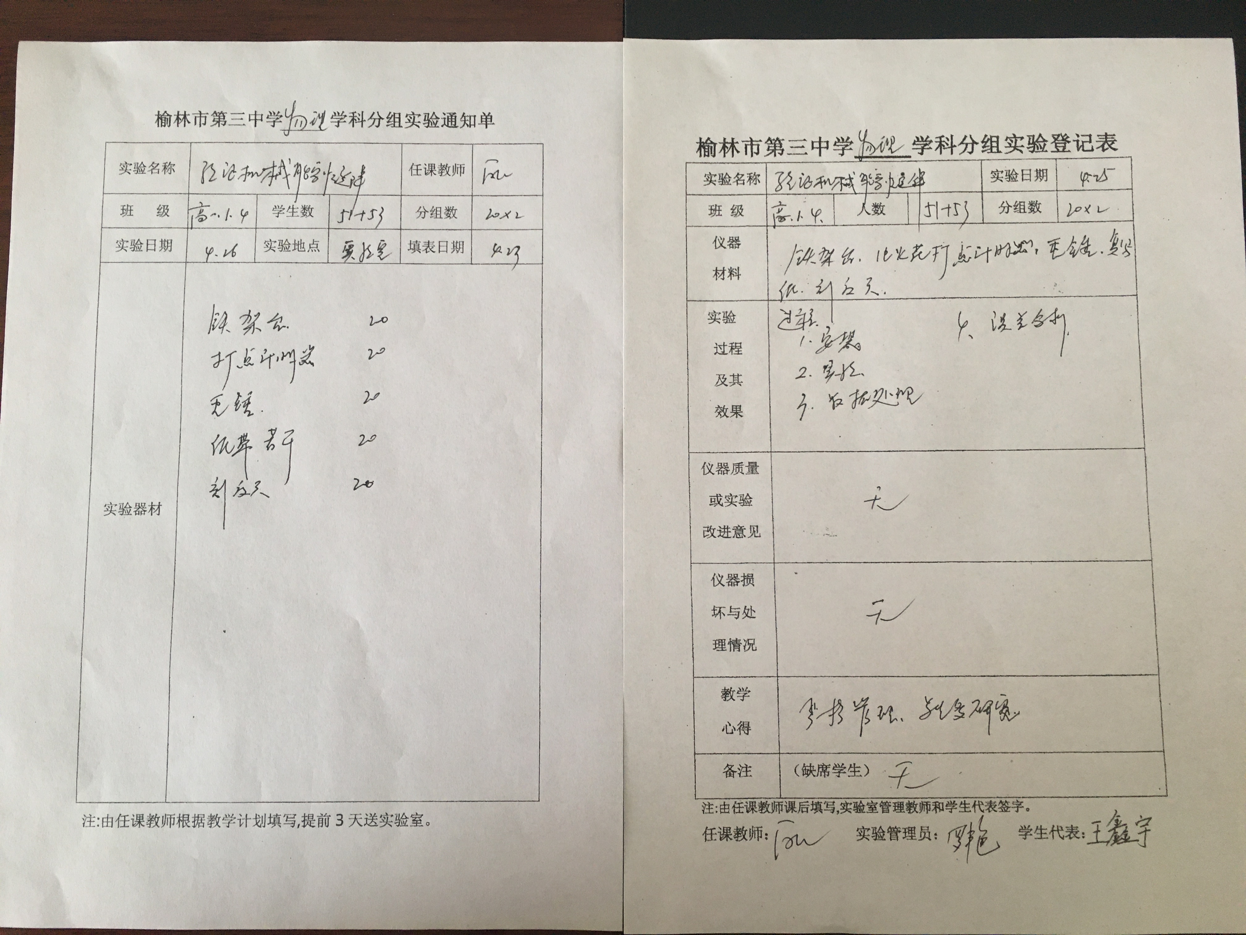 实验登记表