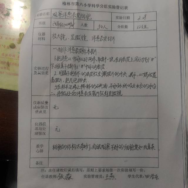 实验登记表