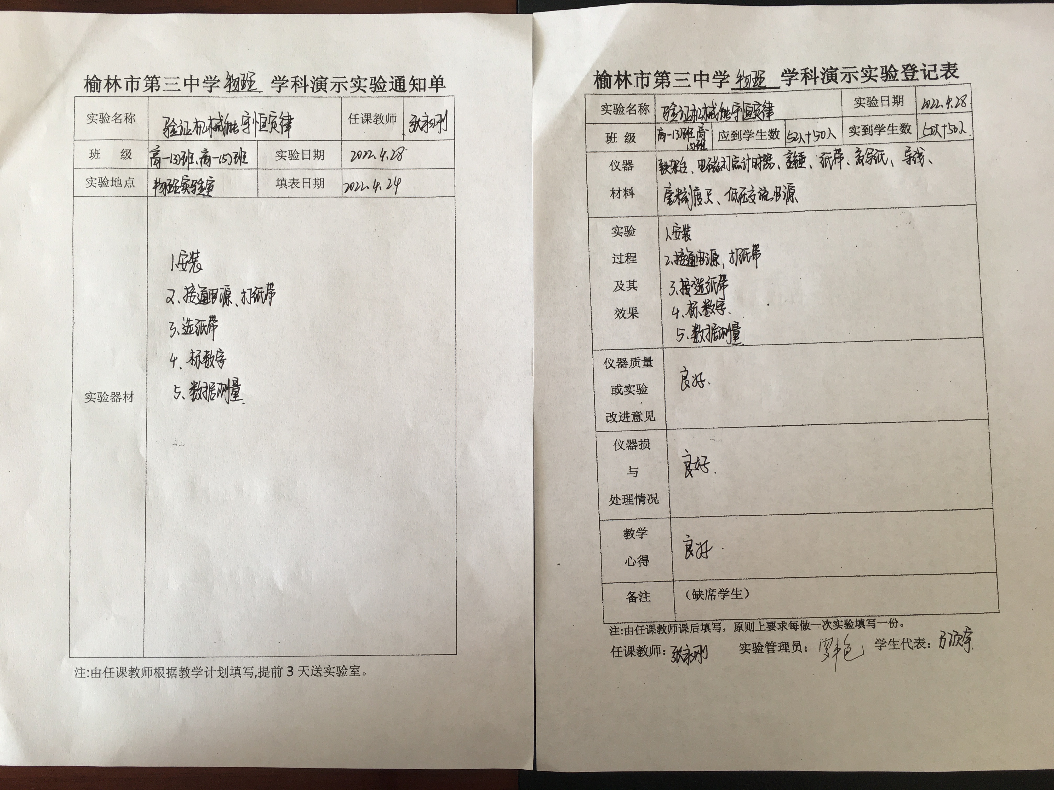 实验登记表