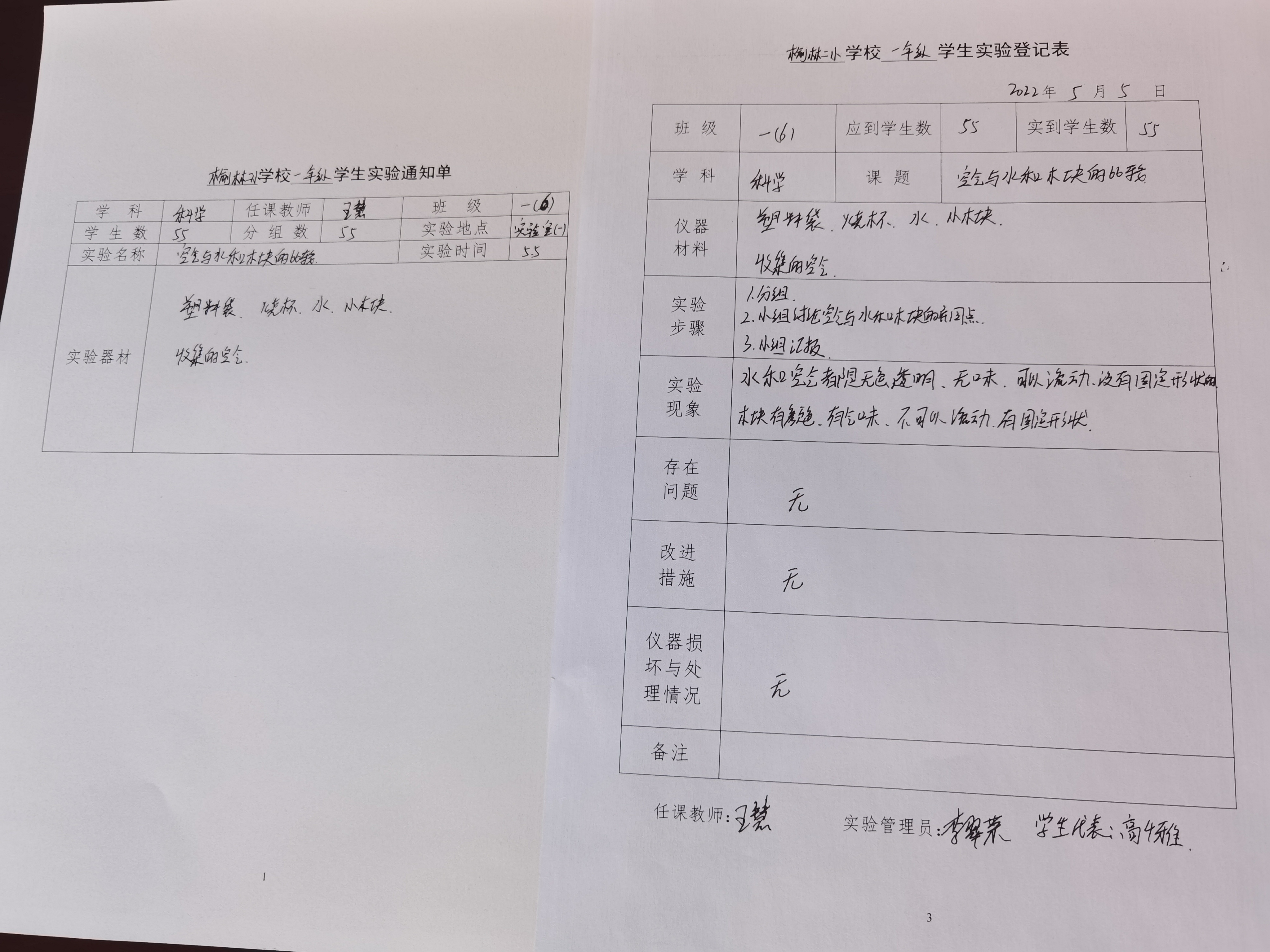 实验登记表