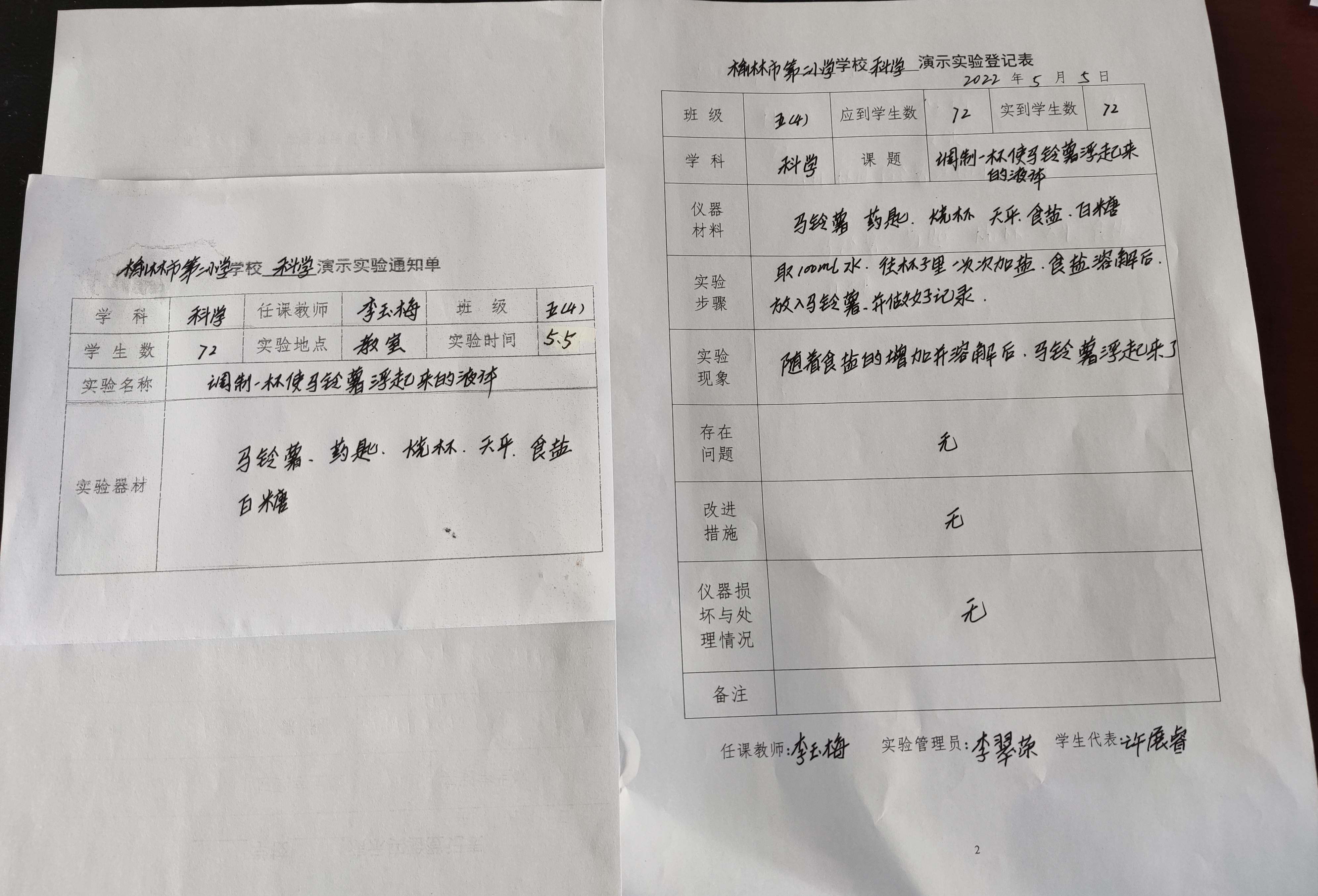 实验登记表