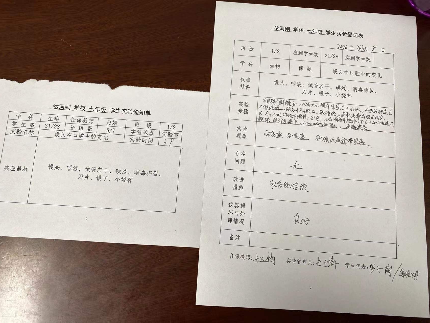 实验登记表