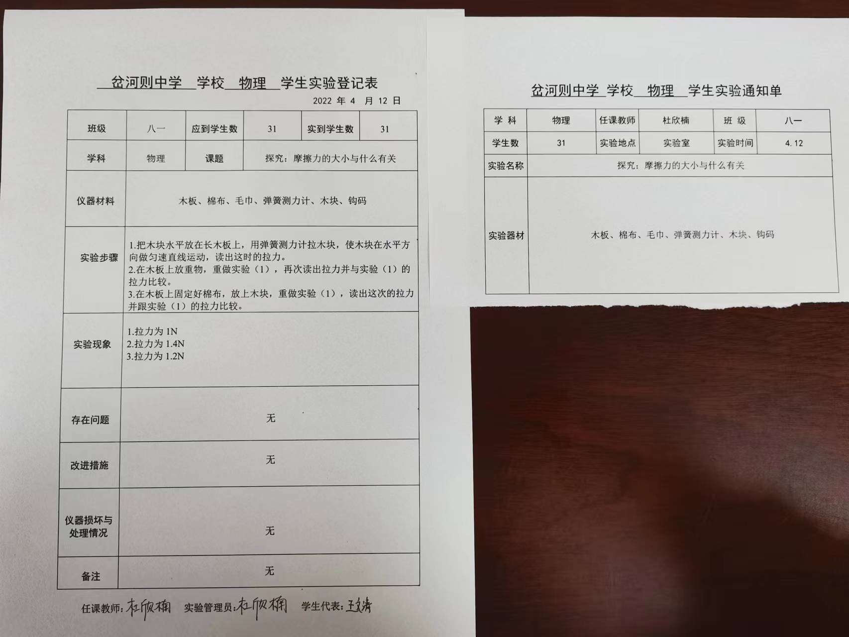 实验登记表