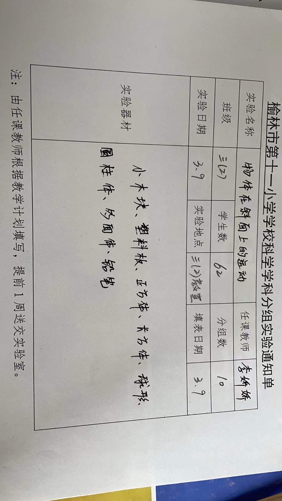 实验登记表