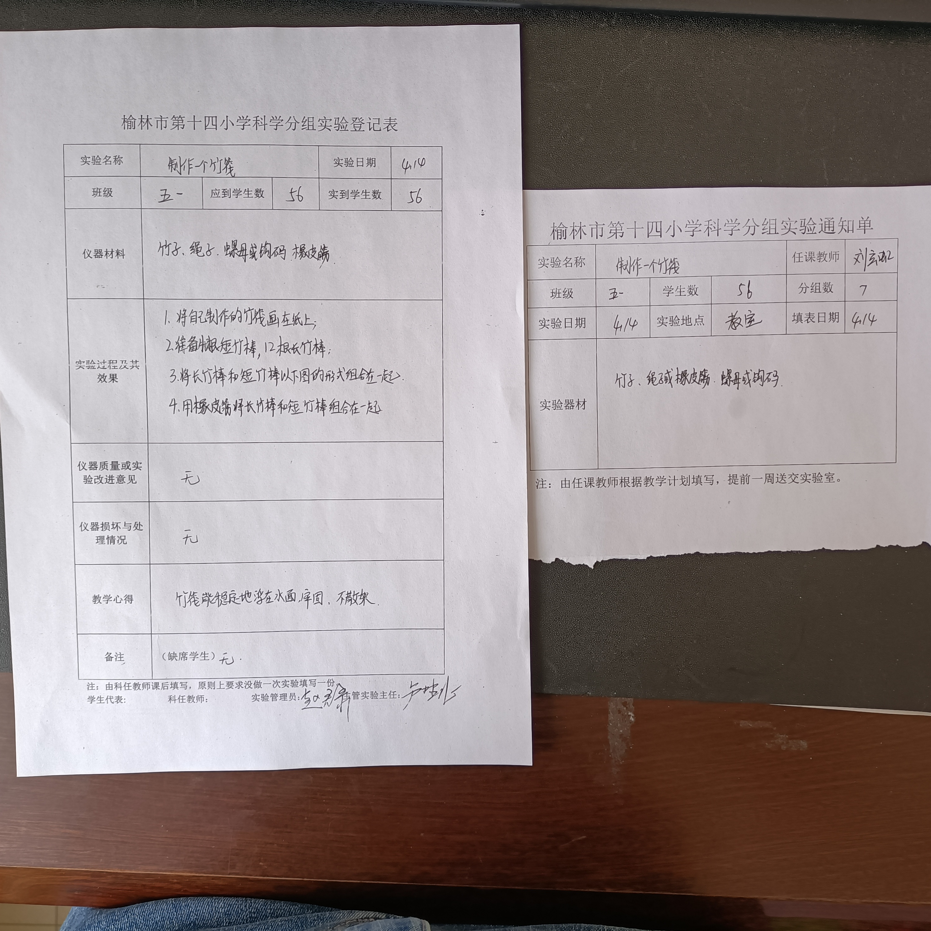 实验登记表