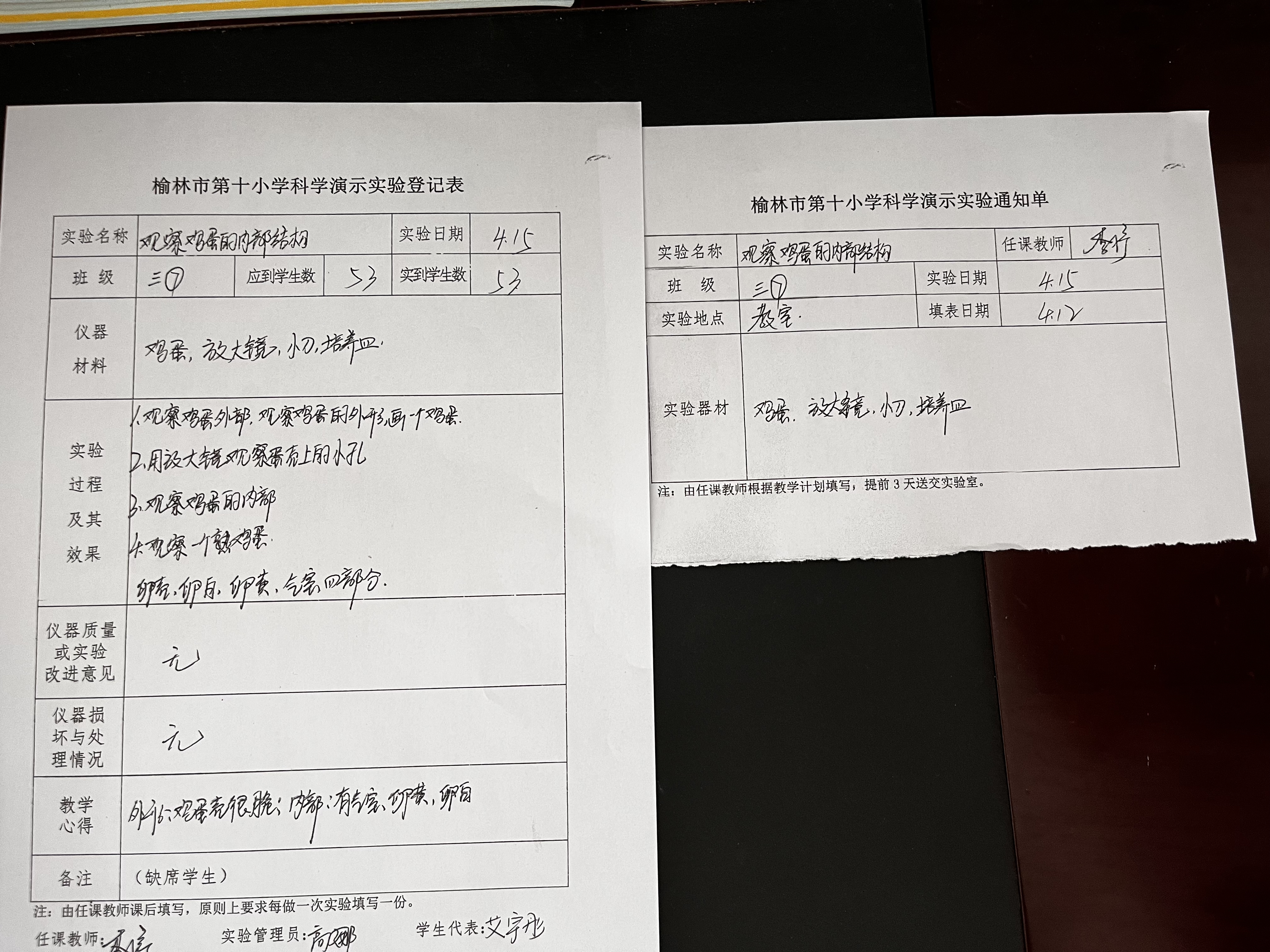 观察鸡蛋内部结构
