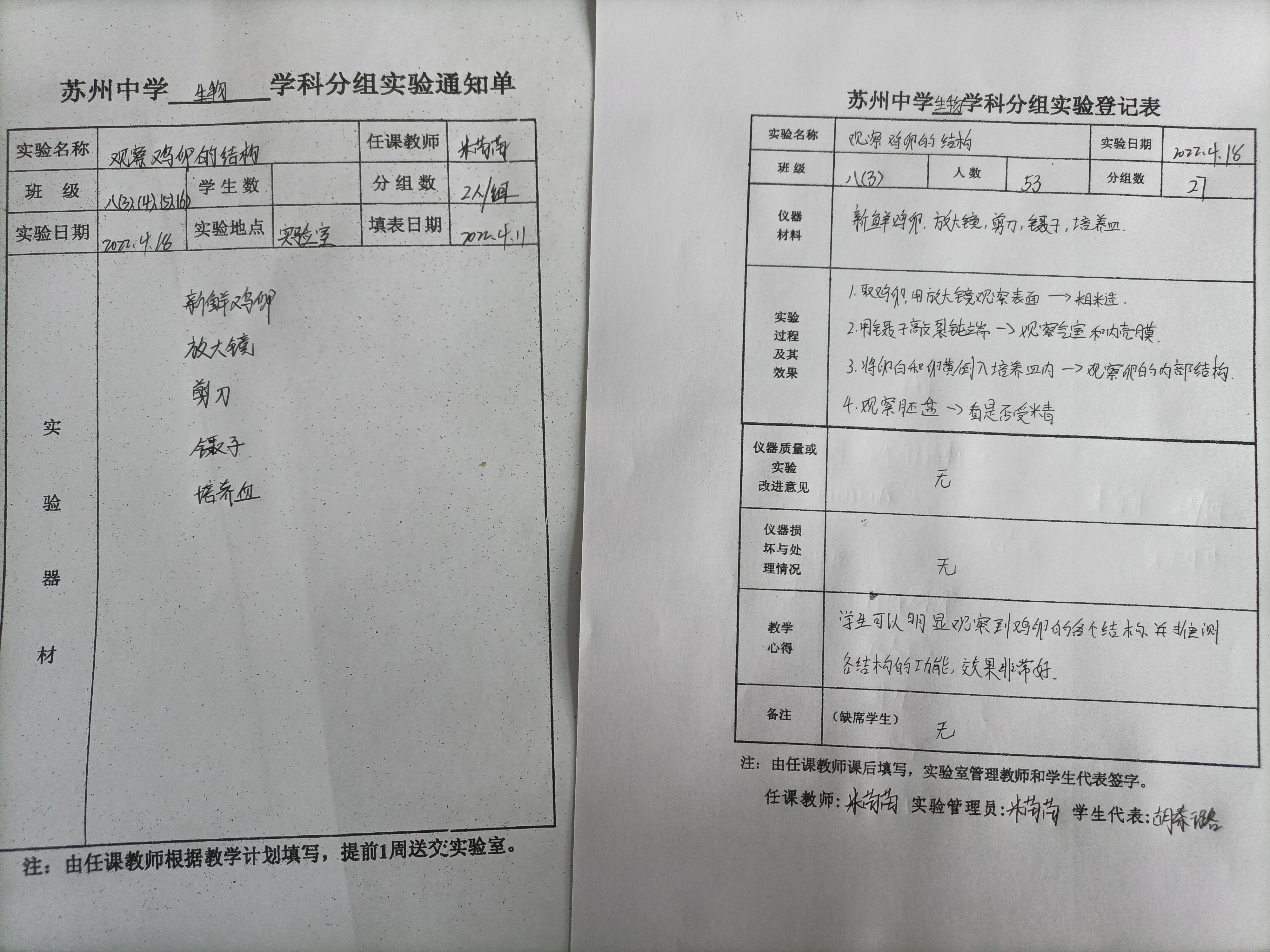 观察鸡卵的结构