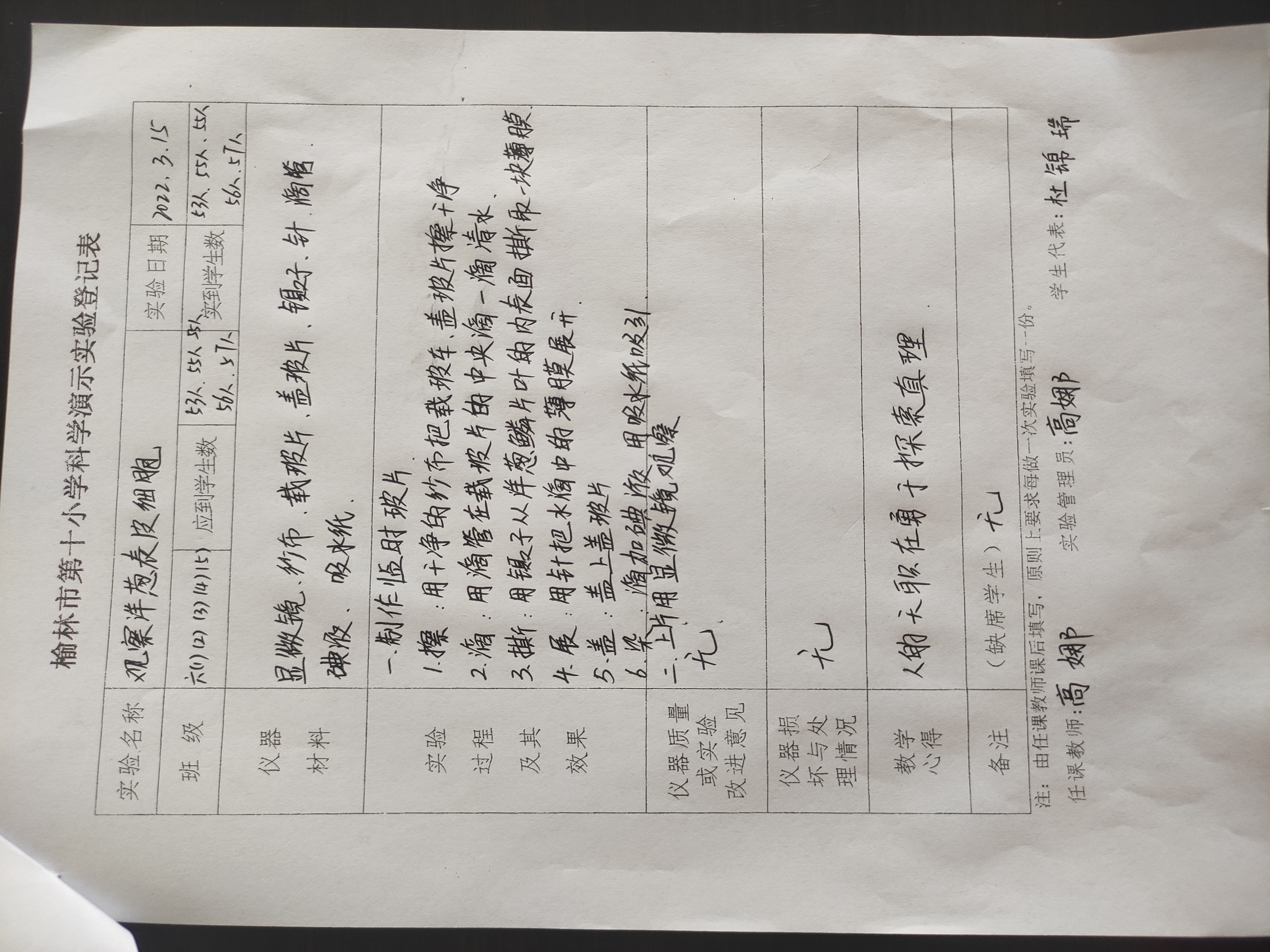 实验登记表