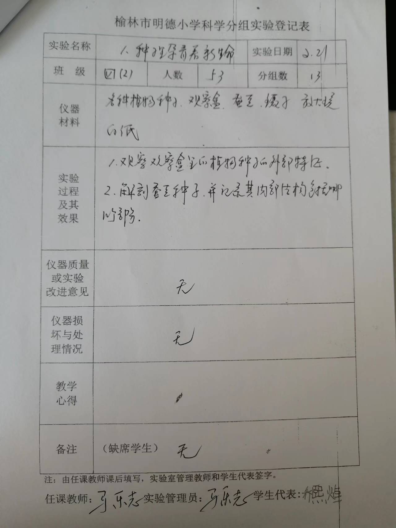 实验登记表