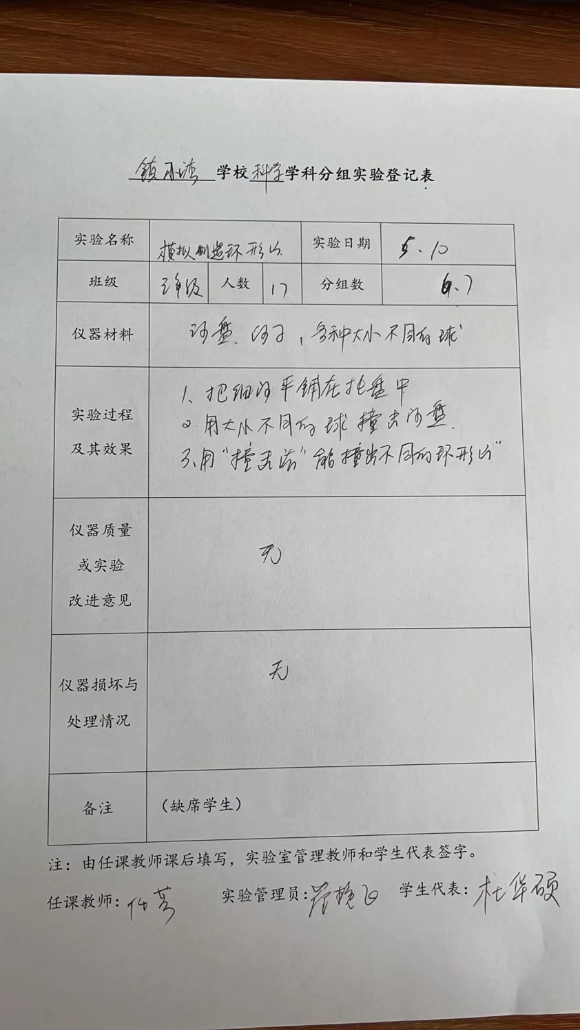 实验登记表