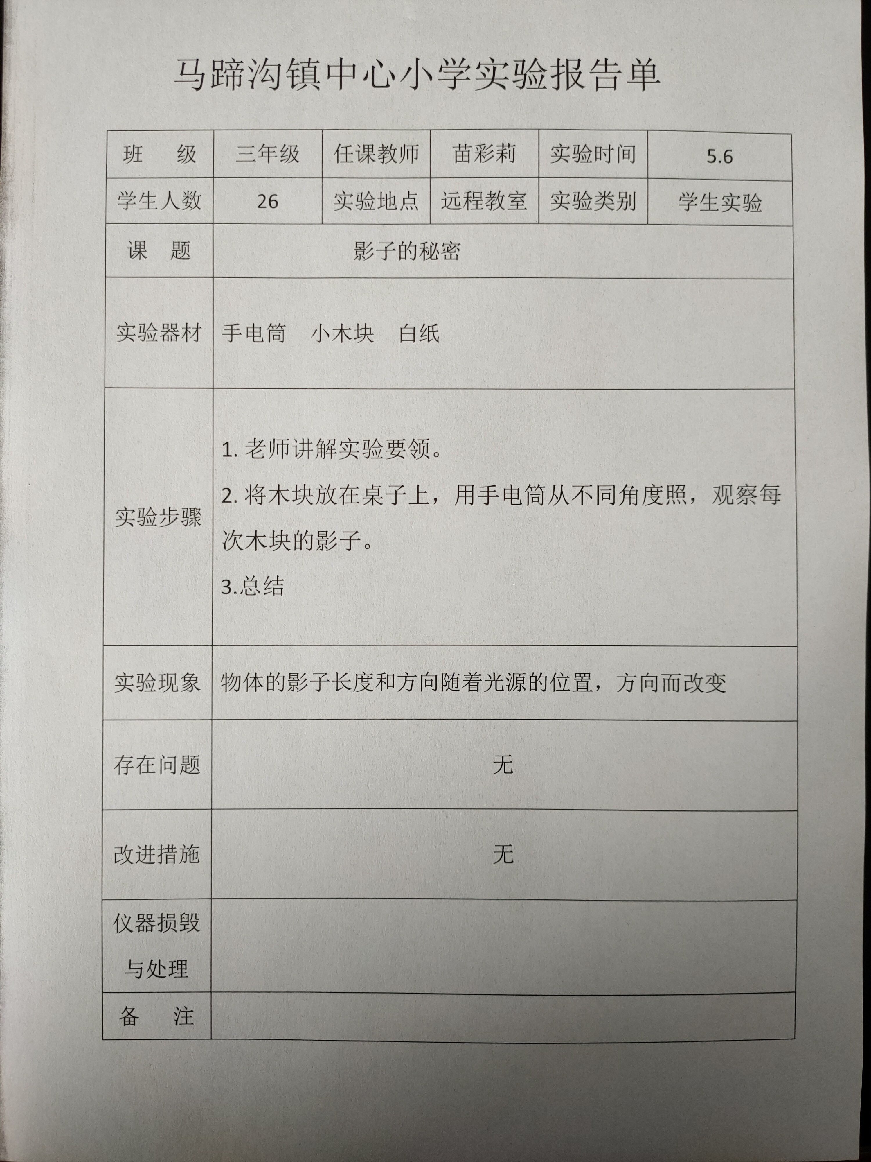 实验登记表