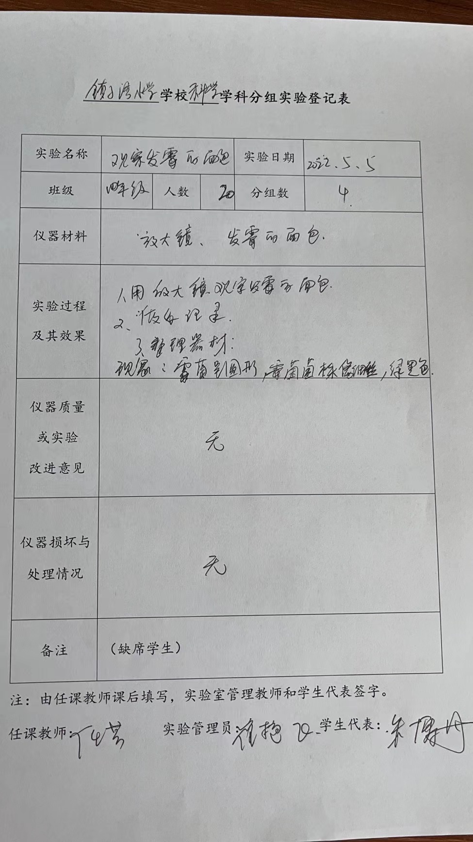 实验登记表
