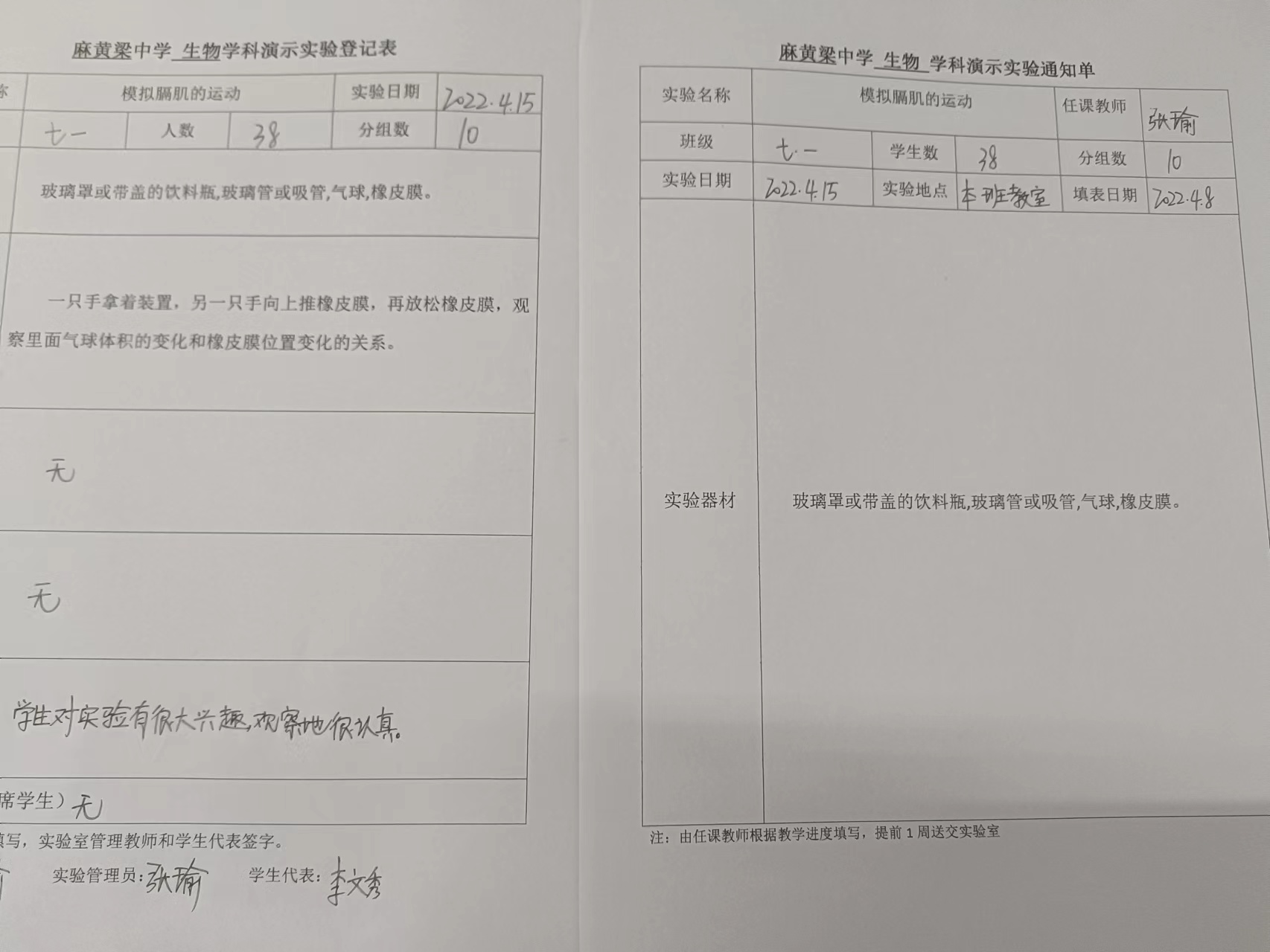 实验登记表