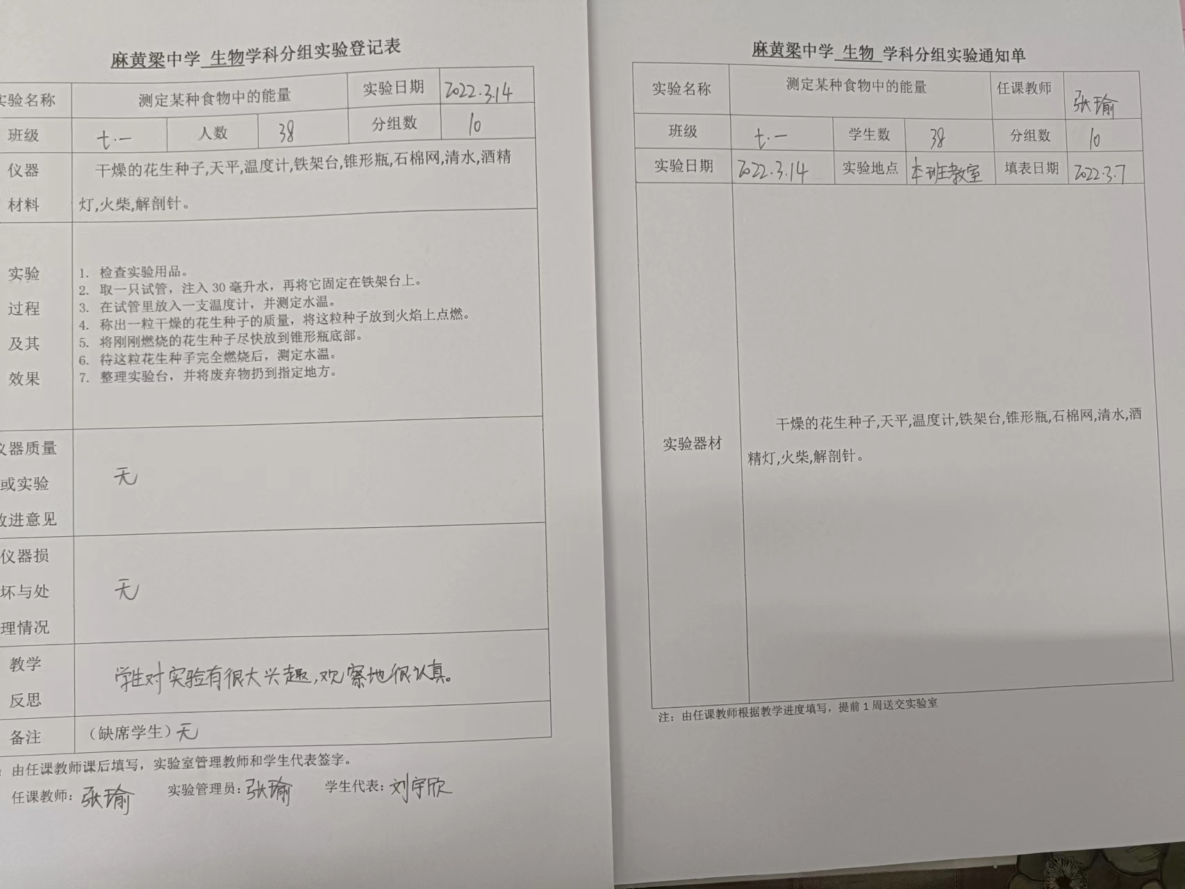 实验登记表