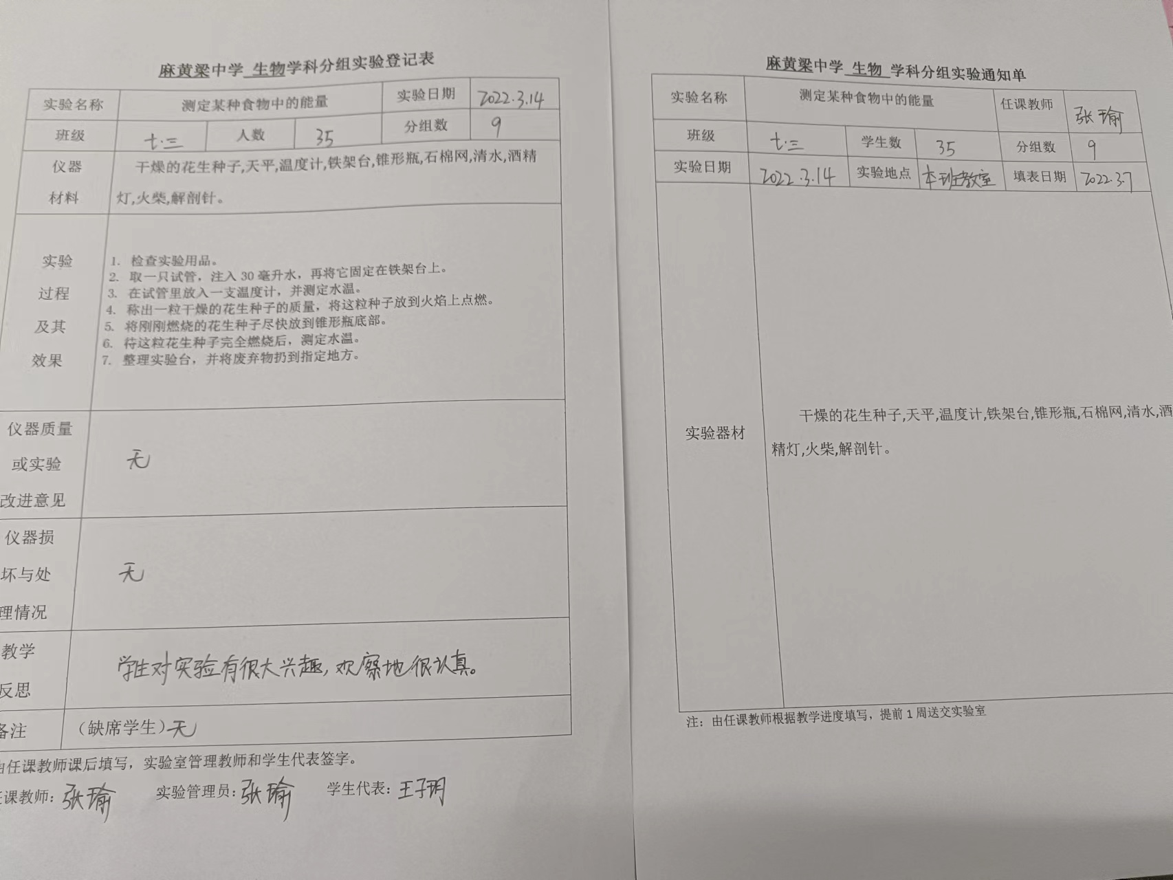 实验登记表