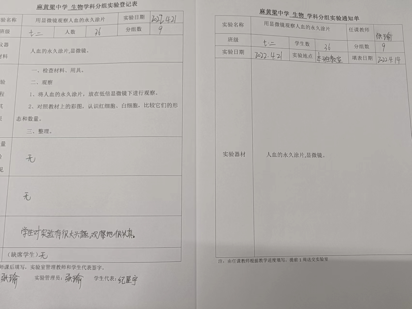 实验登记表