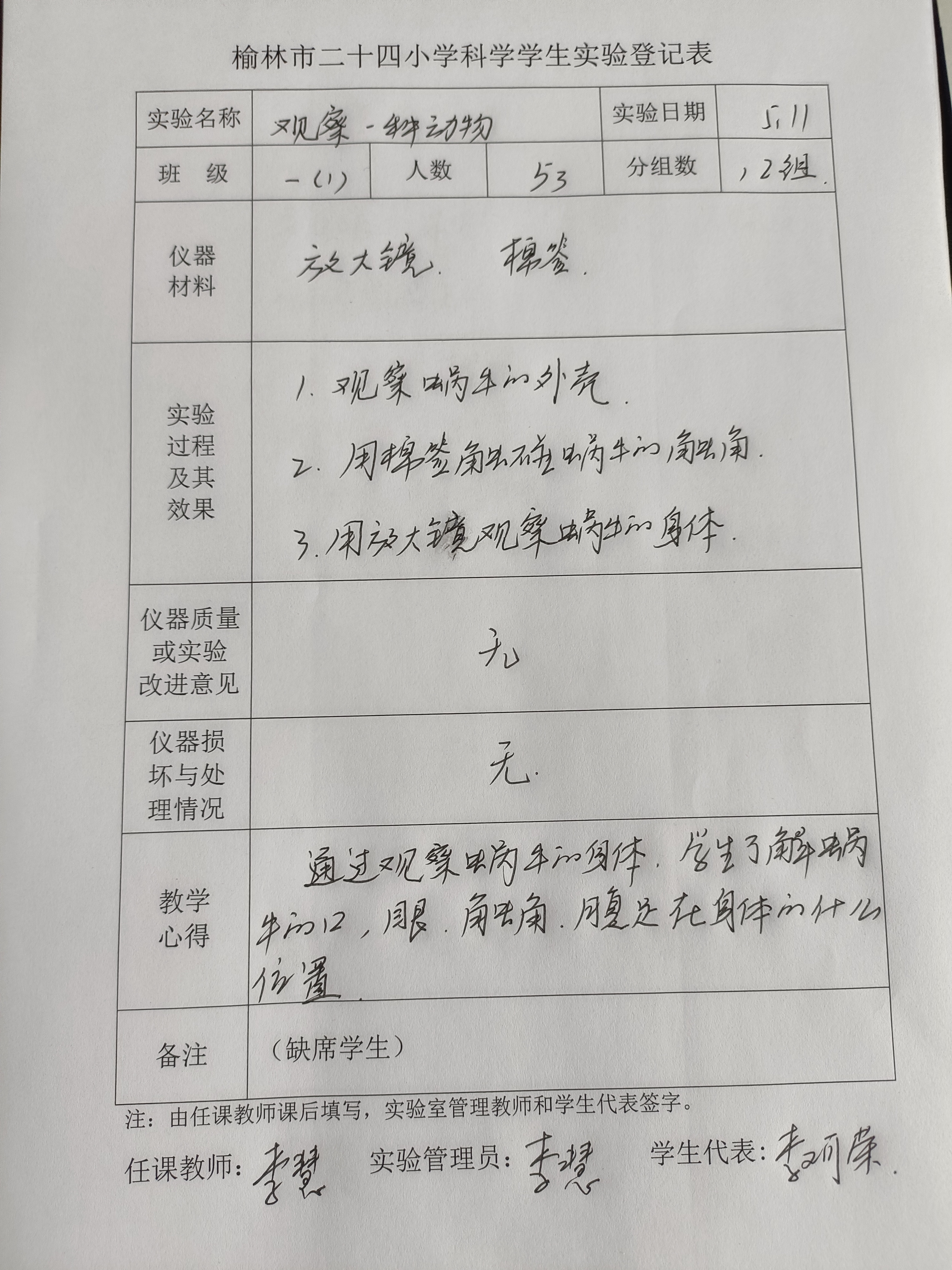 实验登记表