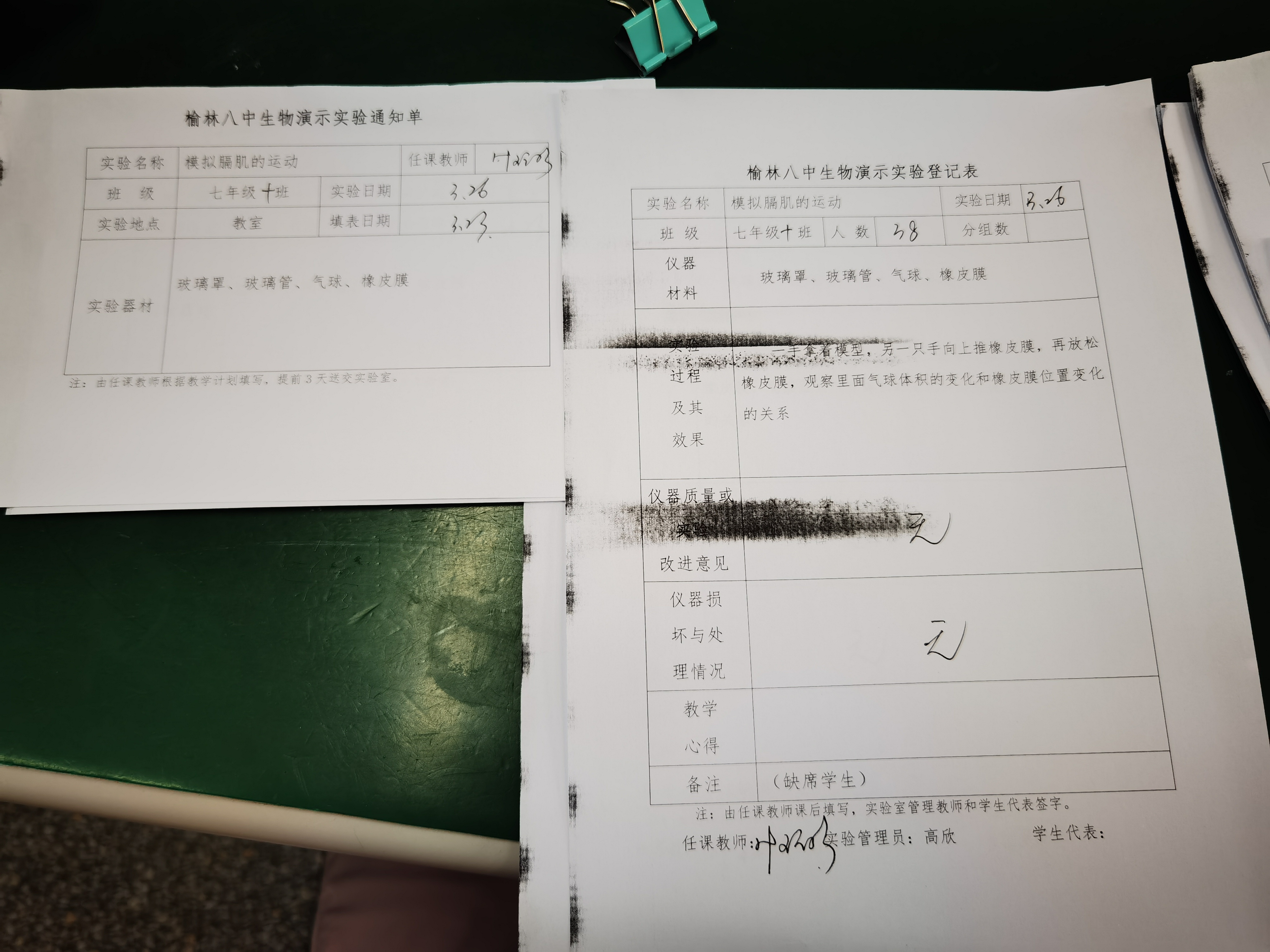 实验登记表