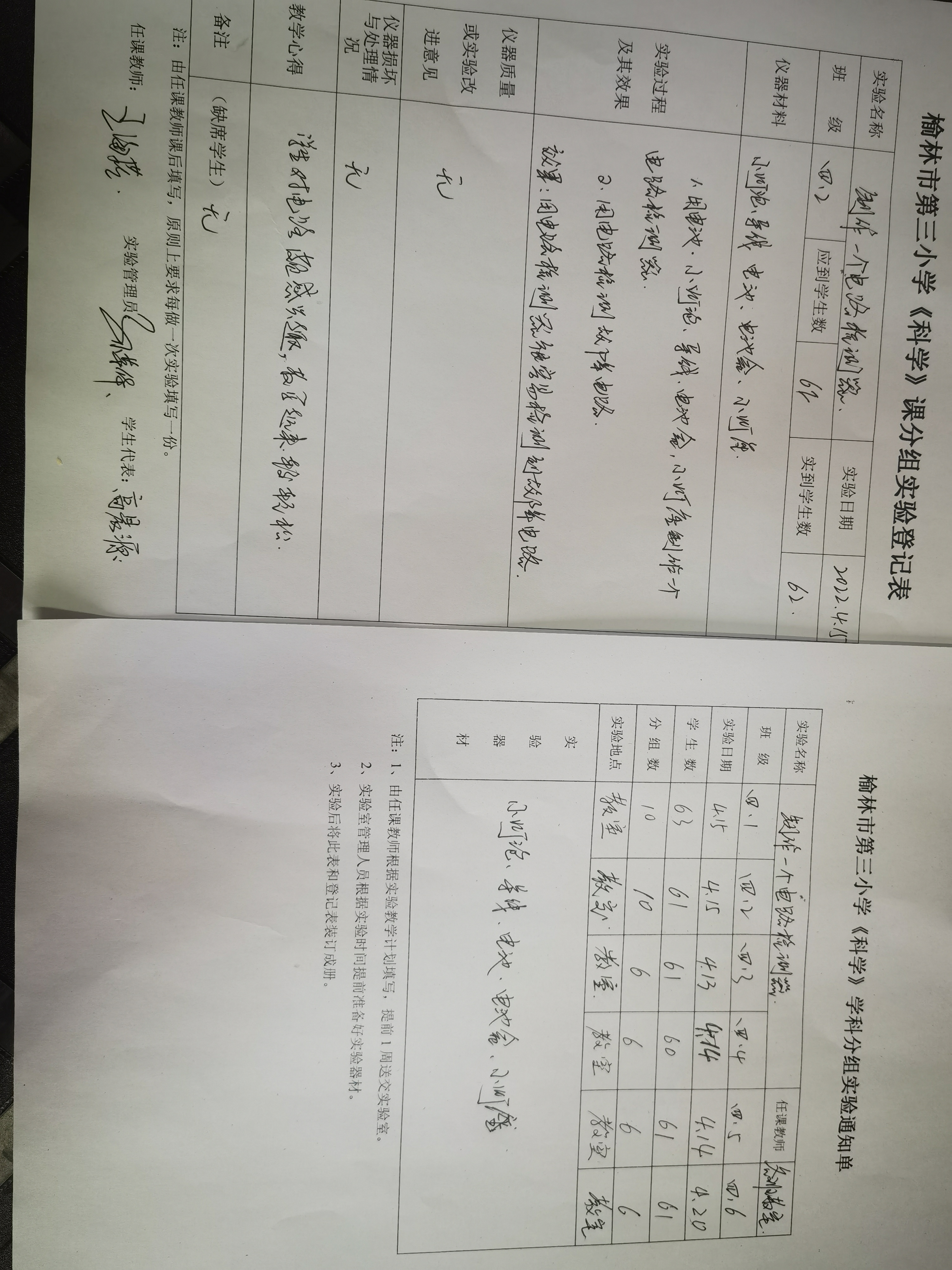 实验登记表