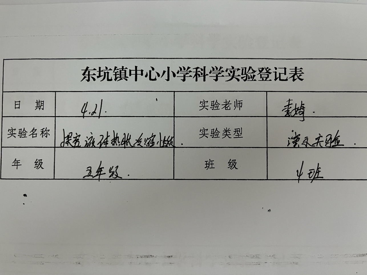 实验登记表
