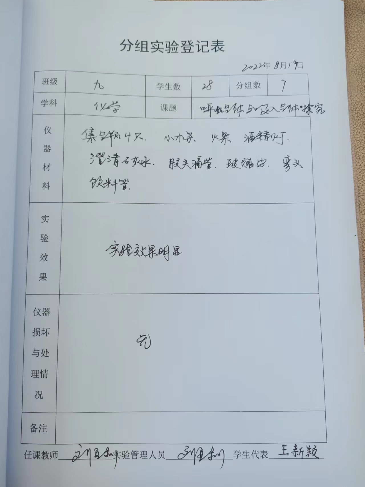实验登记表