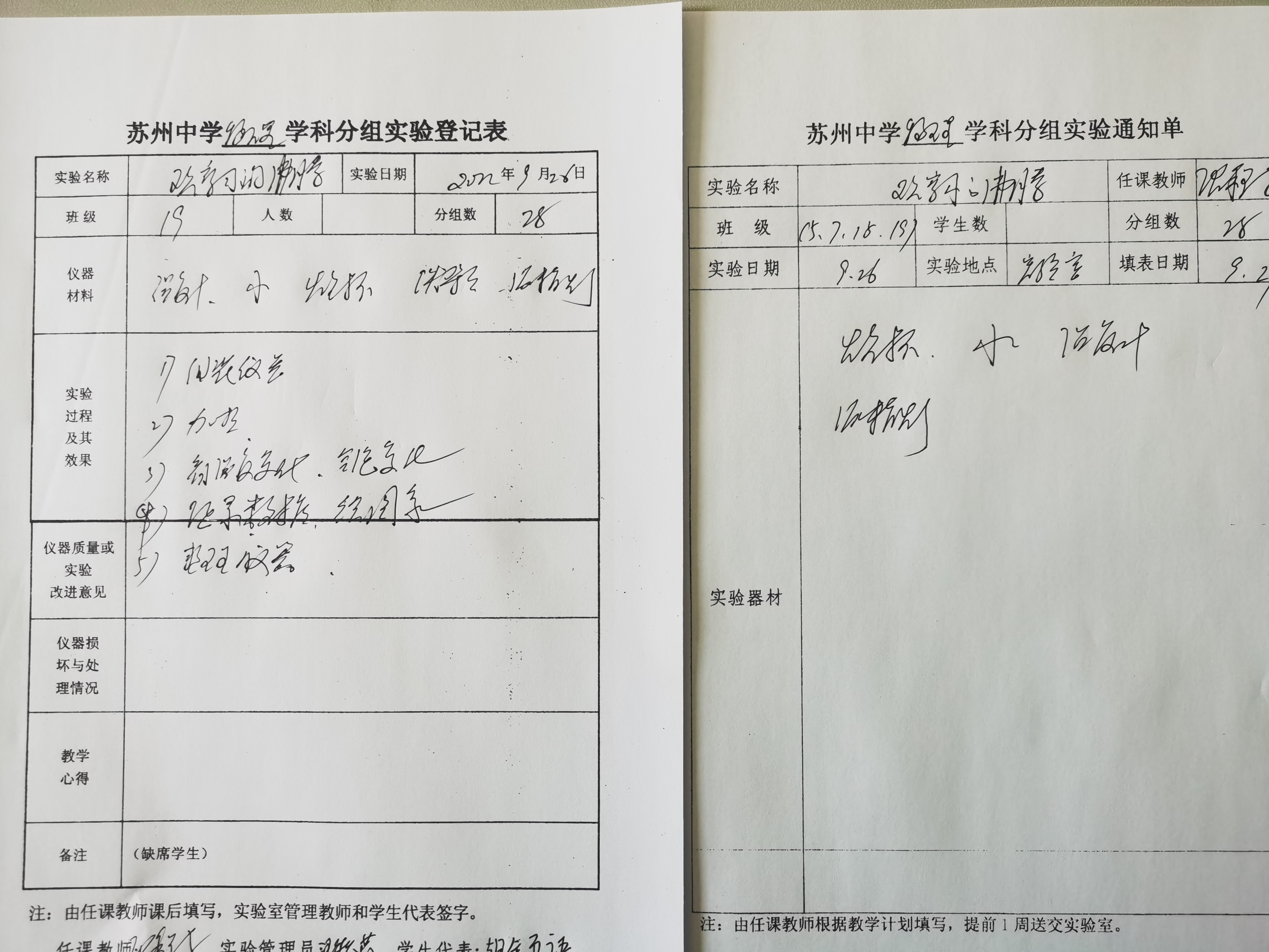 实验登记表