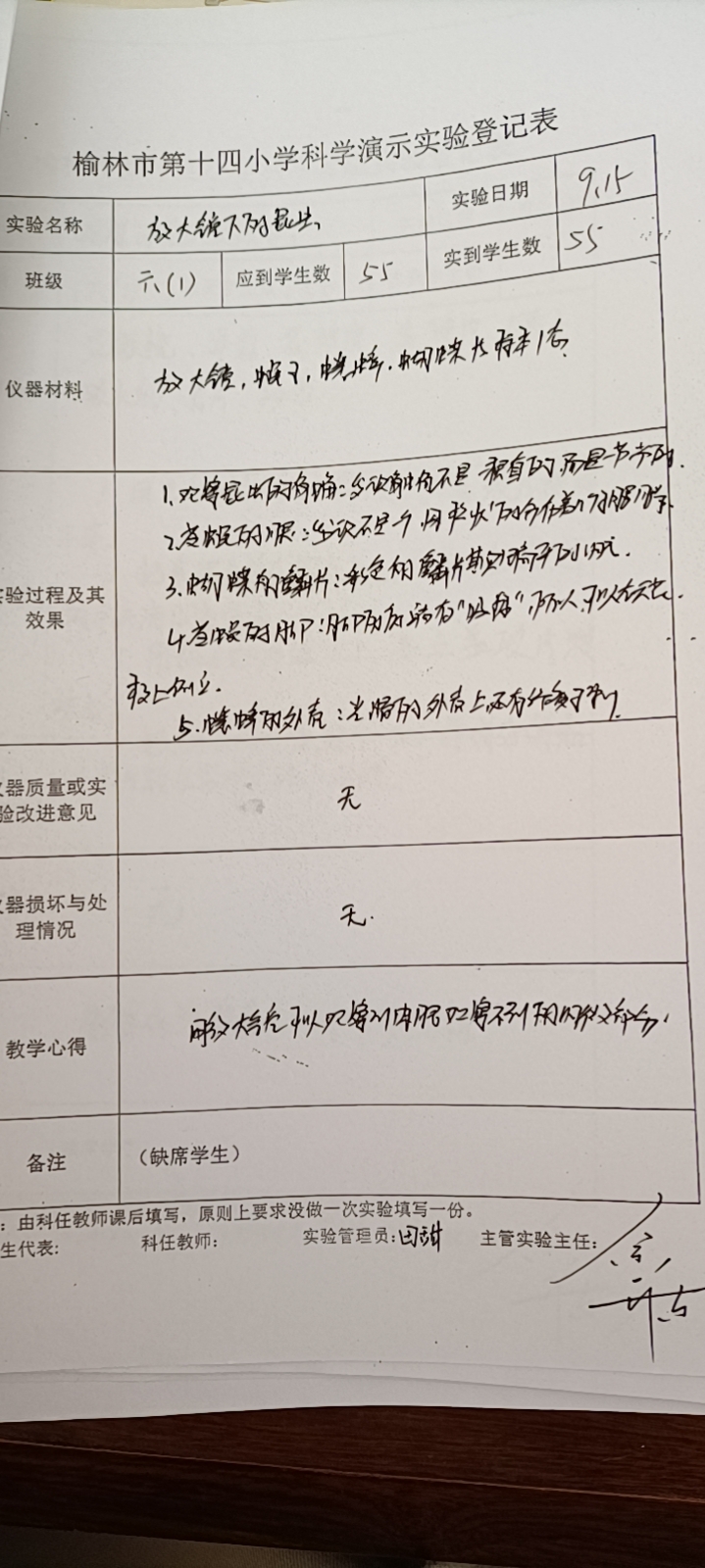 实验登记表