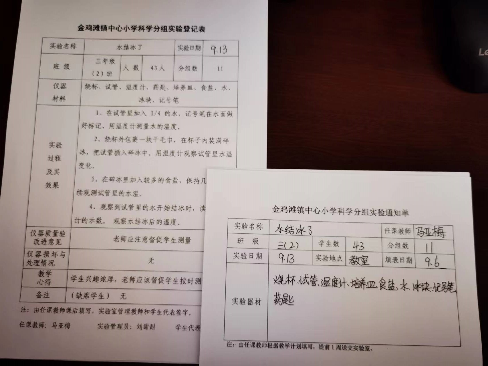 实验登记表