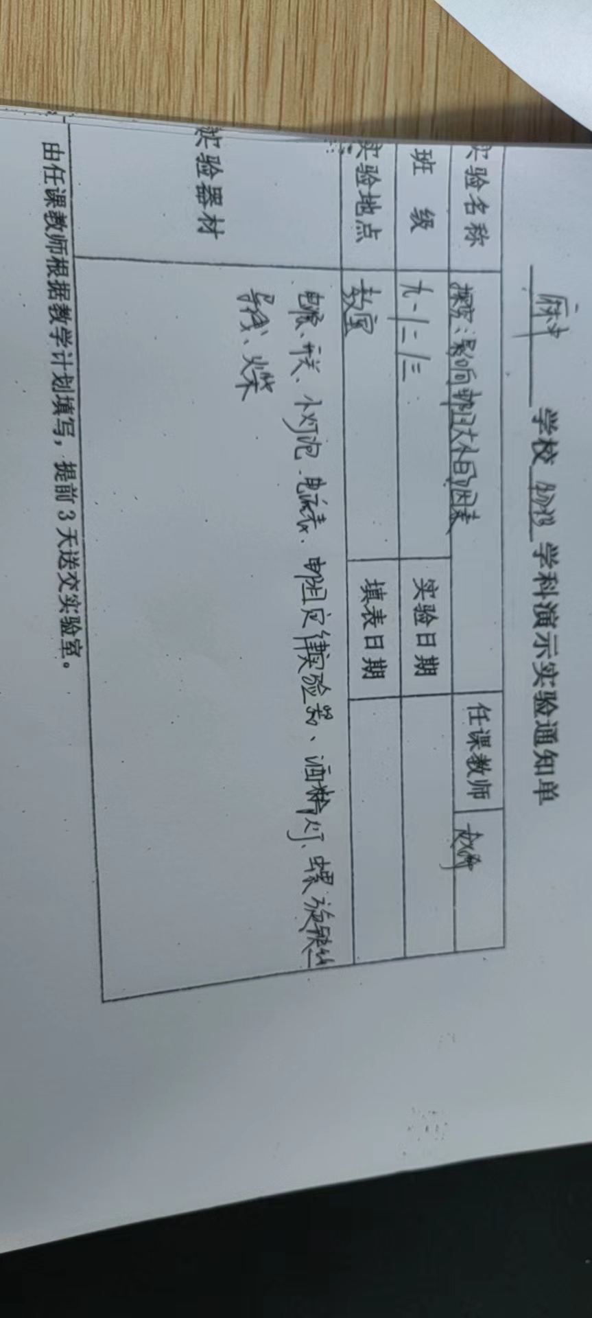 实验登记表