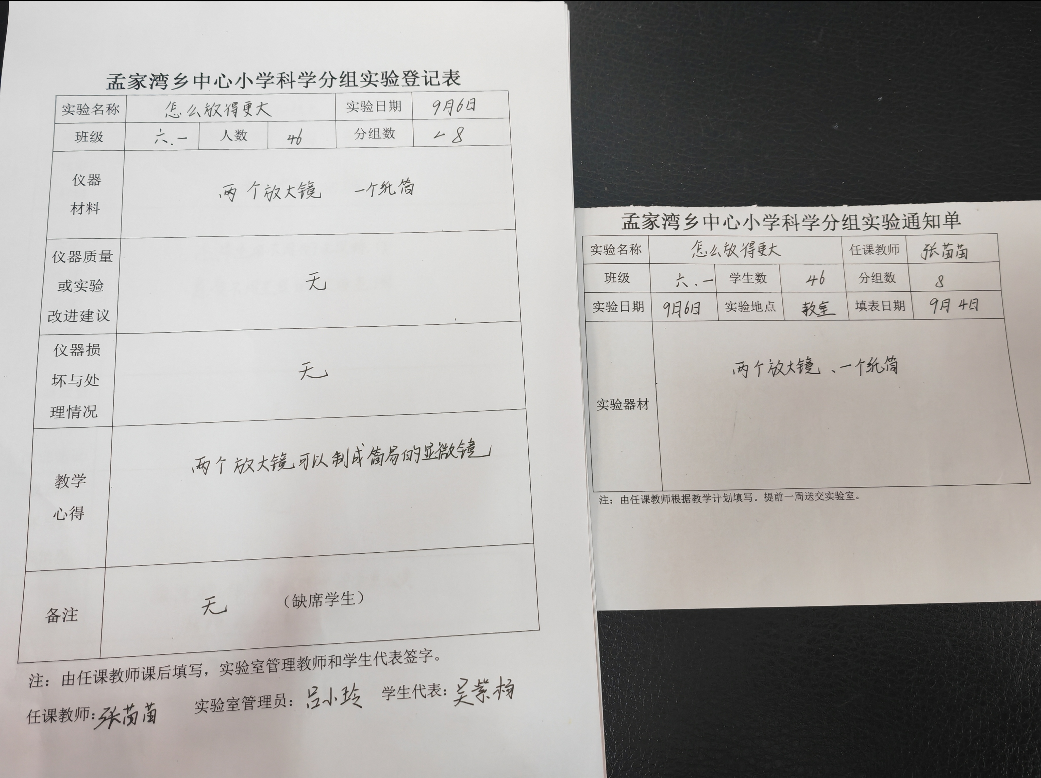 实验登记表