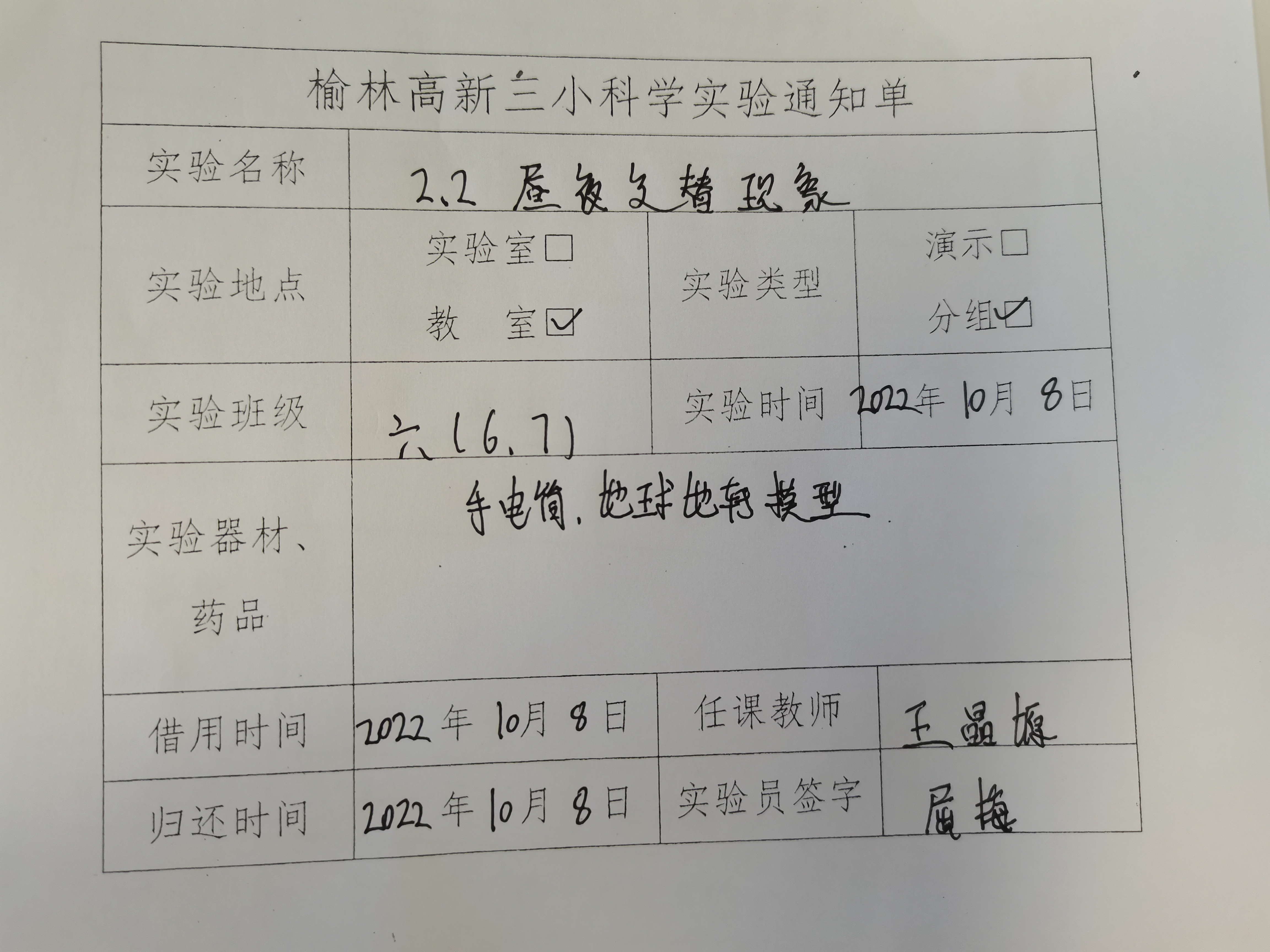 实验登记表