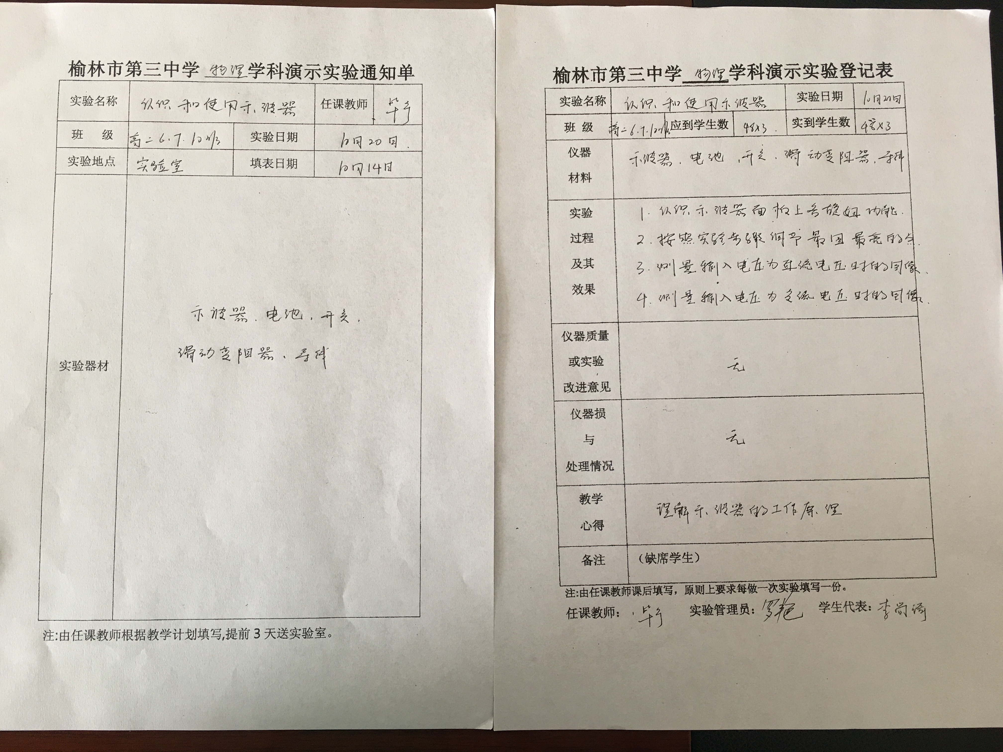 实验登记表