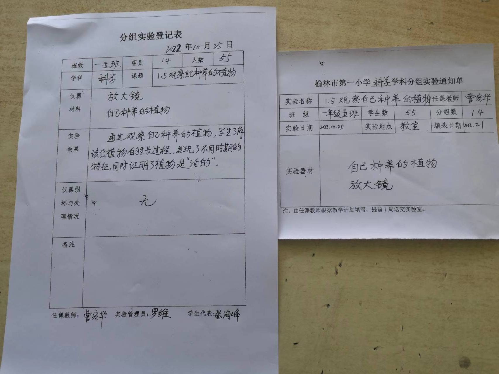 实验登记表