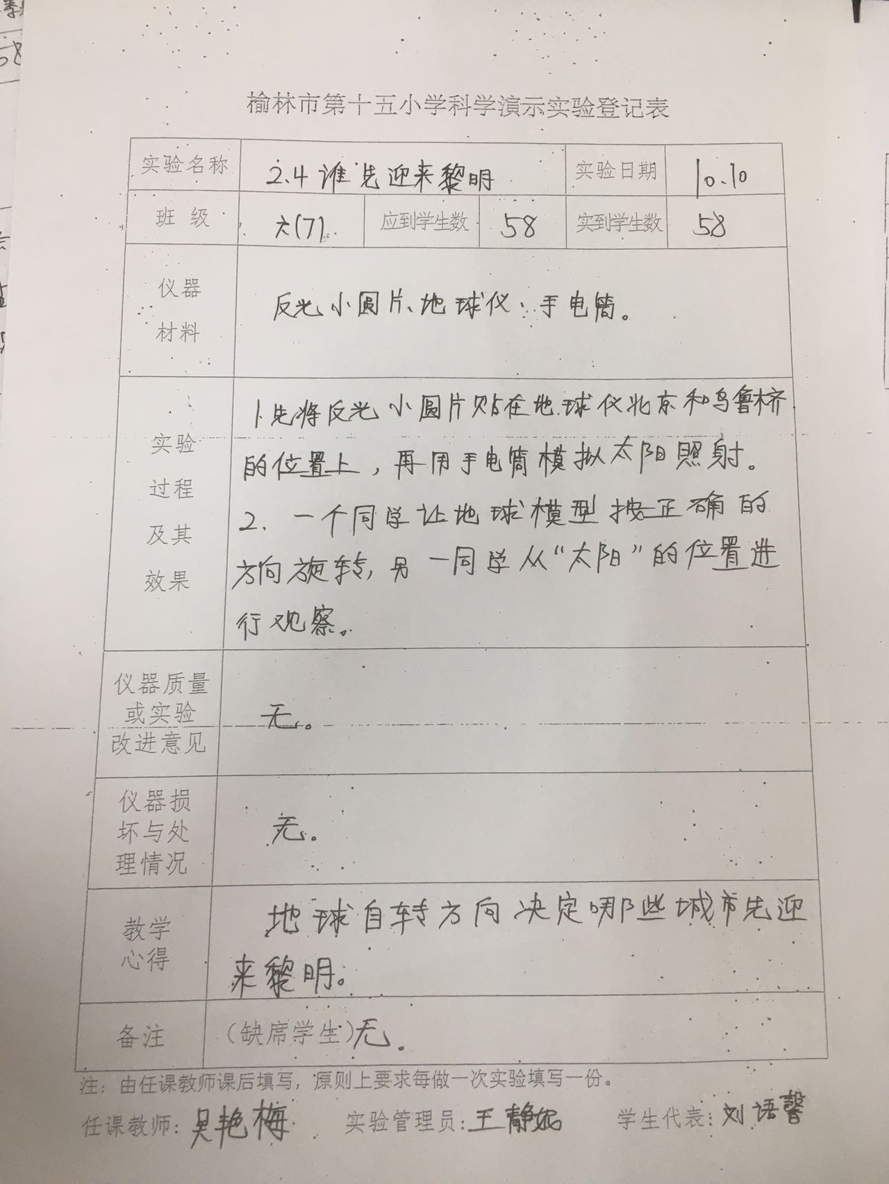 实验登记表