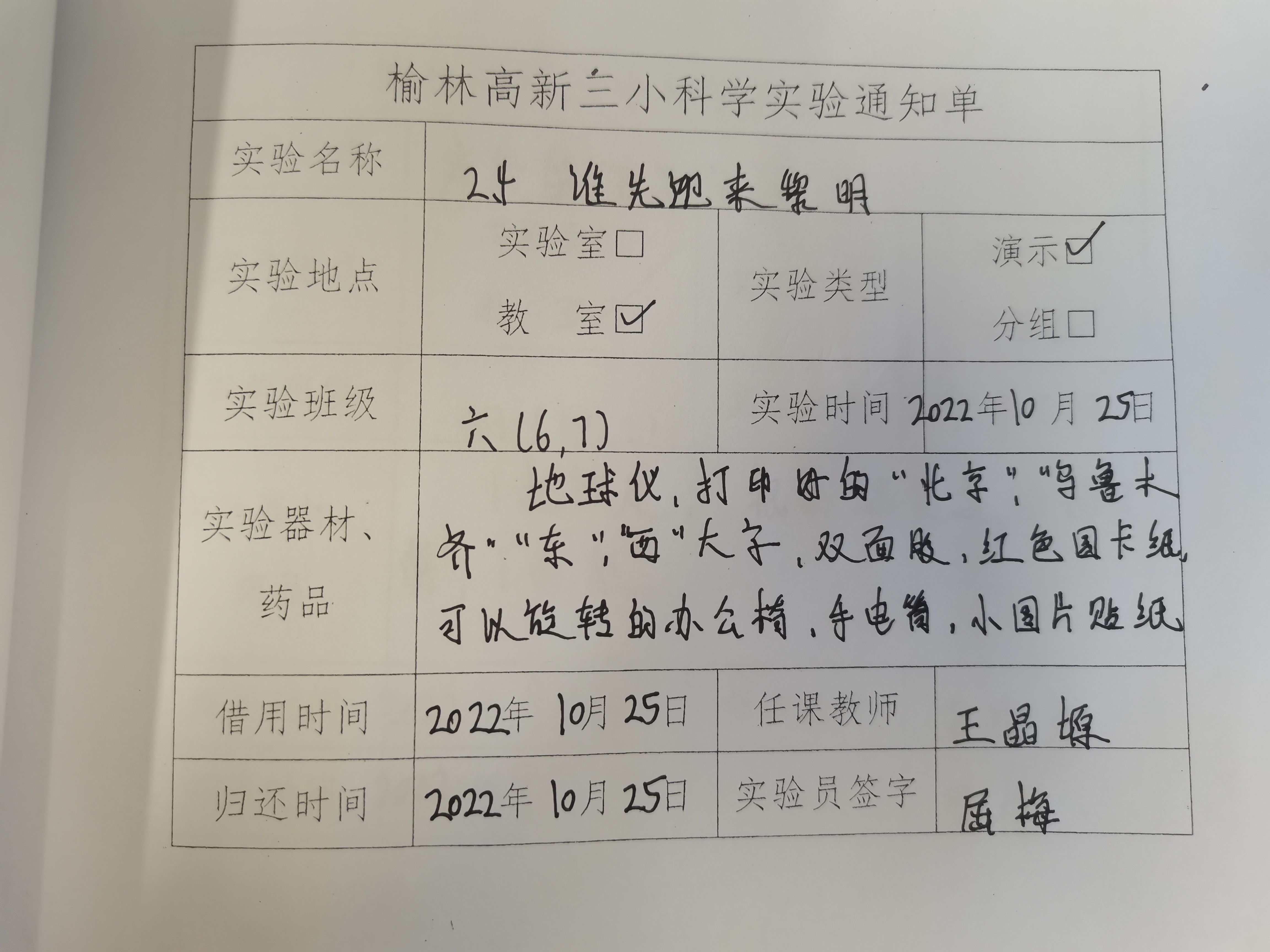 实验登记表