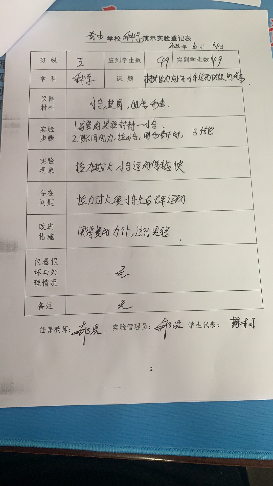 实验登记表
