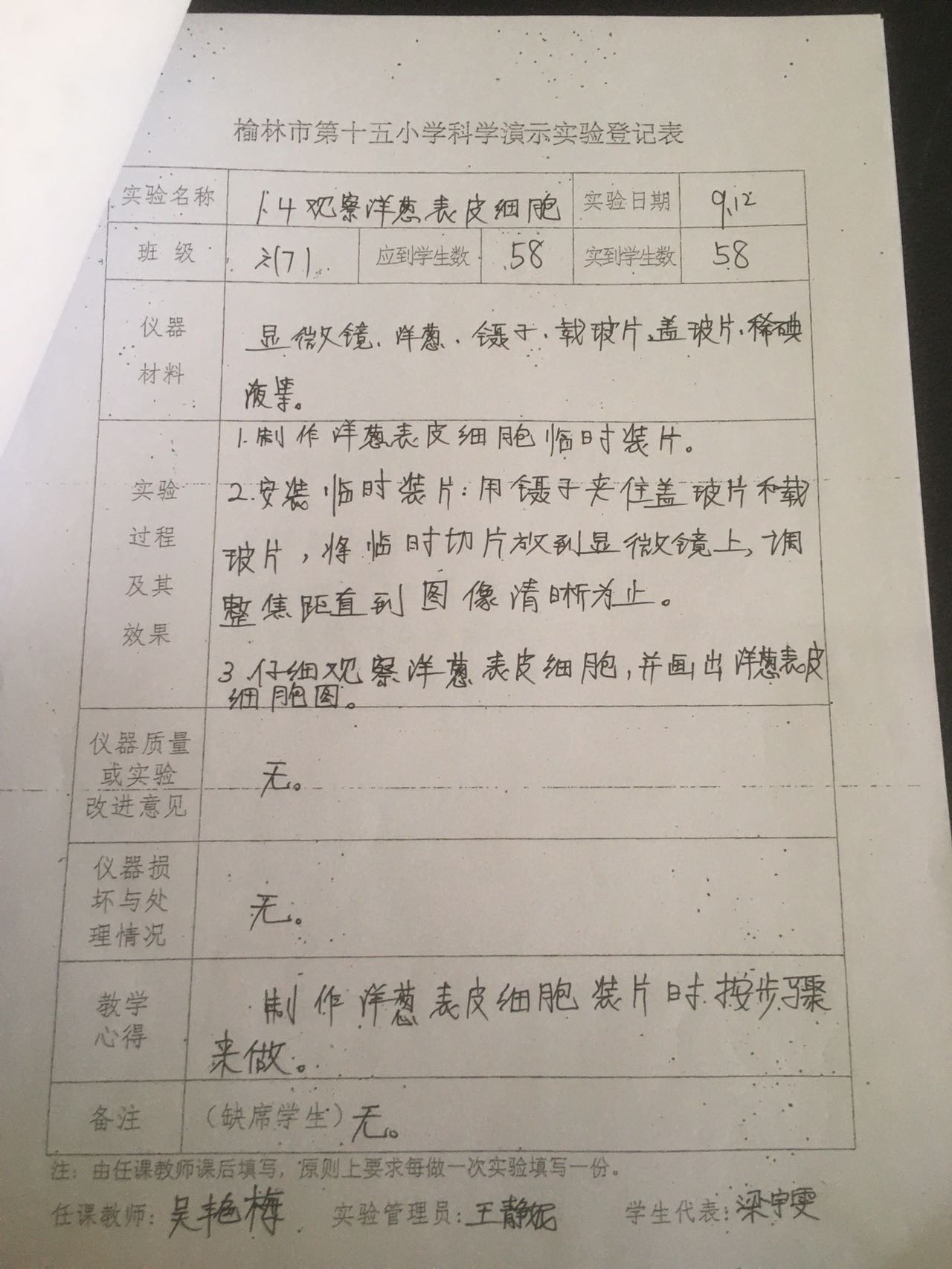 实验登记表