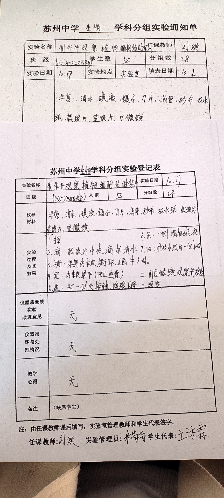实验登记表